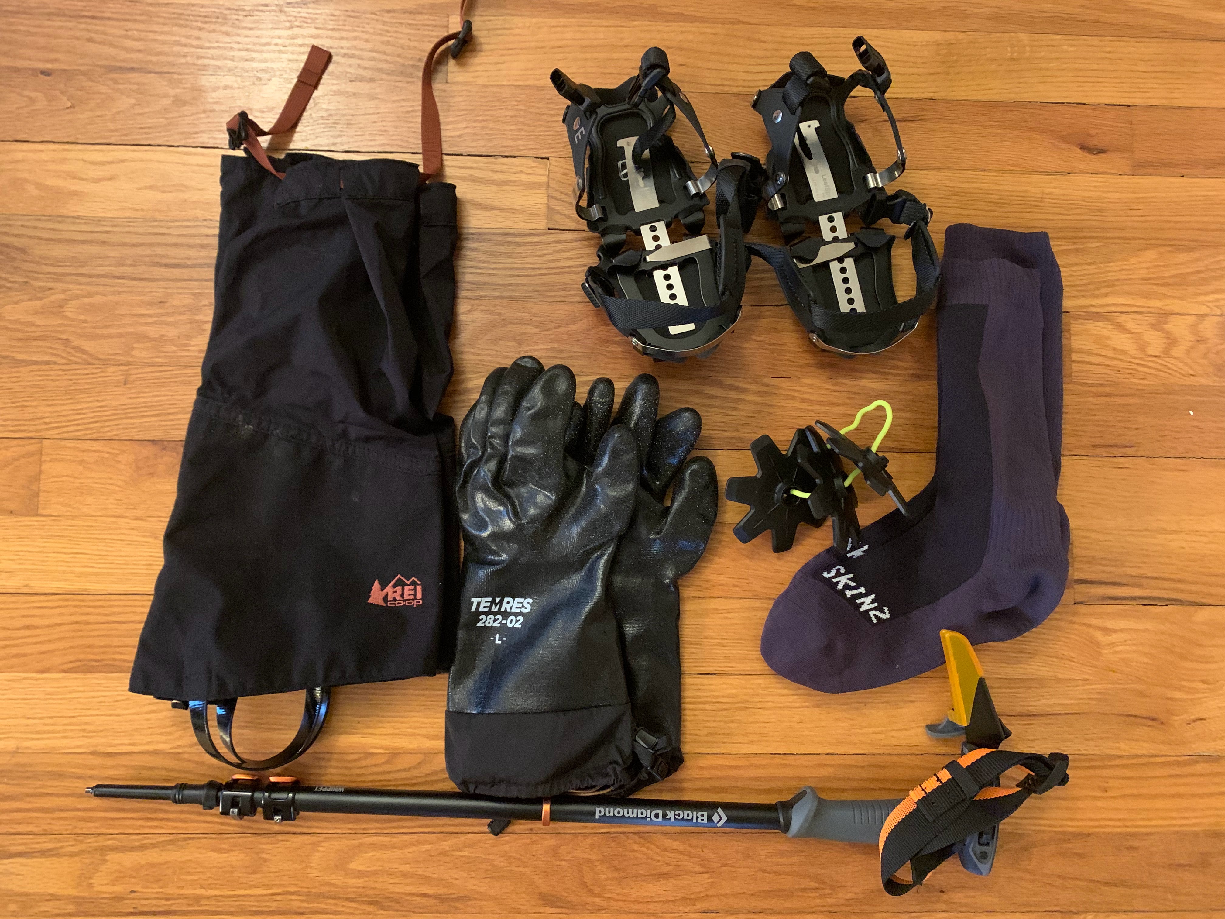 2023 will be a high snow year in the Sierra Nevada mountains. Snow is also expected as we go over Mt. Jacinto around mile marker 165 just west of Palm Springs. We have upgraded our gear by purchasing several items: Katoola K10 hiking crampons, Black Diamond Whippet ski pole, Showa Waterproof insulated gloves, dry socks, winter/snow gaiters, and snow baskets for our trekking poles.