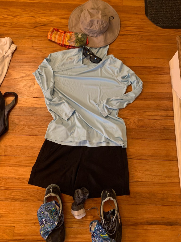 Hikers generally do not carry more than one set of clothing on their hike. Everyone wears the same thing each and every day. When we get to town, we will do laundry to “clean” our clothes. We will stink, but so does everyone else.