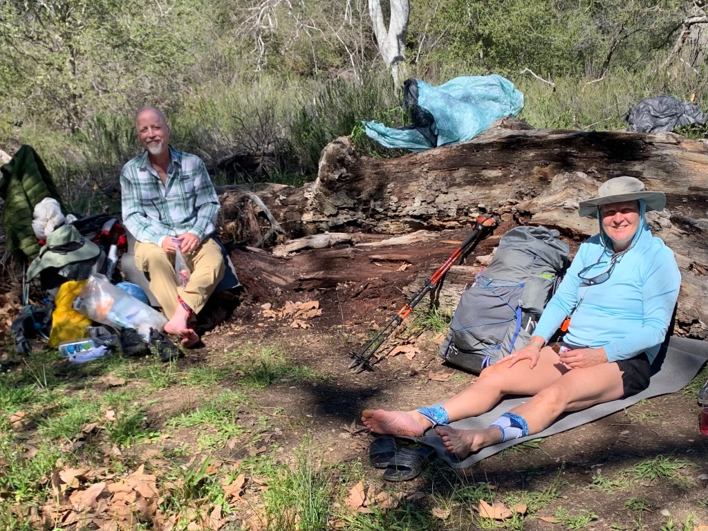 It is nice to sometimes stay at an actual campground with piped water and vault toilets. However, as we walked into the campground we noticed the sign said it was full. It was the weekend and so there were many drive-in campers. Jeff asked a camper for the location of the camp host and the nice lady asked if were PCT hikers in need of a campsite. She then offered us their extra campsite since their friends were no-shows. Later, her husband brought us a beer. People are so nice!