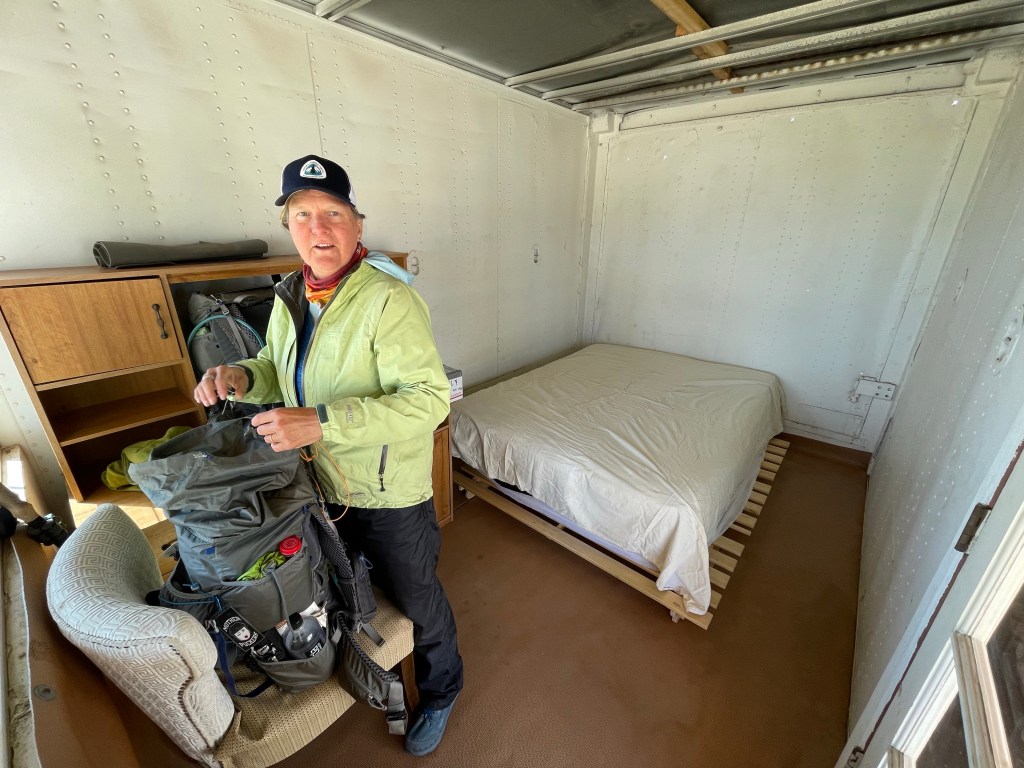 Both of our sleep systems are basically the same: Big Agnes Q-Core SLX sleeping pad plus Gossamer gear thin-light 1/4 inch foam sleeping pad, Feathered Friends Swallow model 20F down sleeping bag, Cocoon silk sleeping bag liner, eVent compression dry bag and an inflatable pillow. Jeff will be carrying the Big Agnes pumphouse bag for blowing up our sleeping pads.
