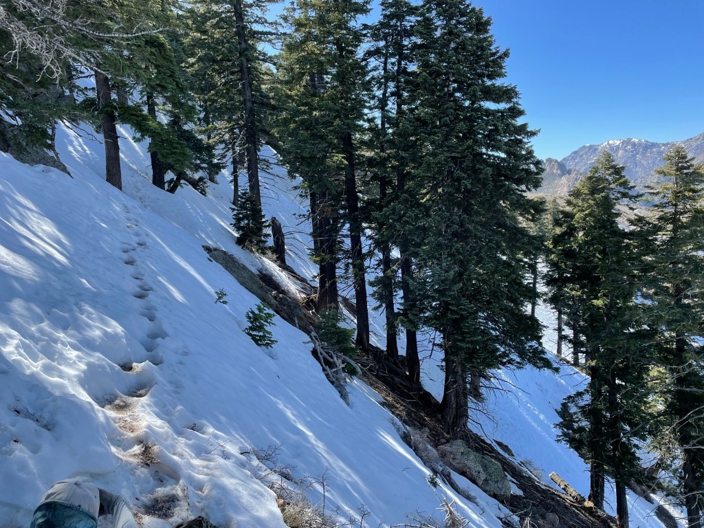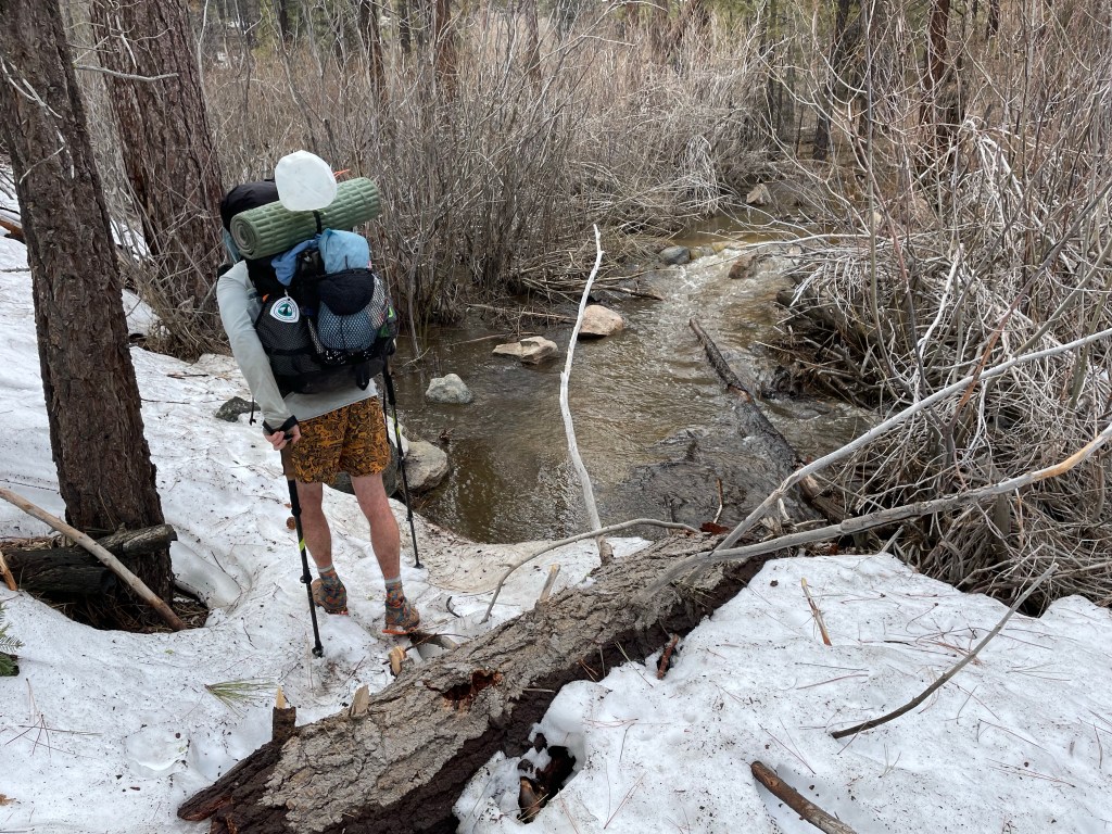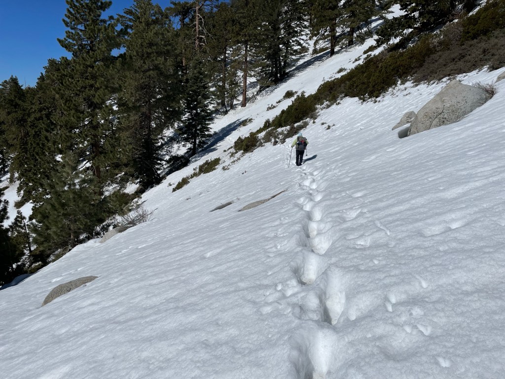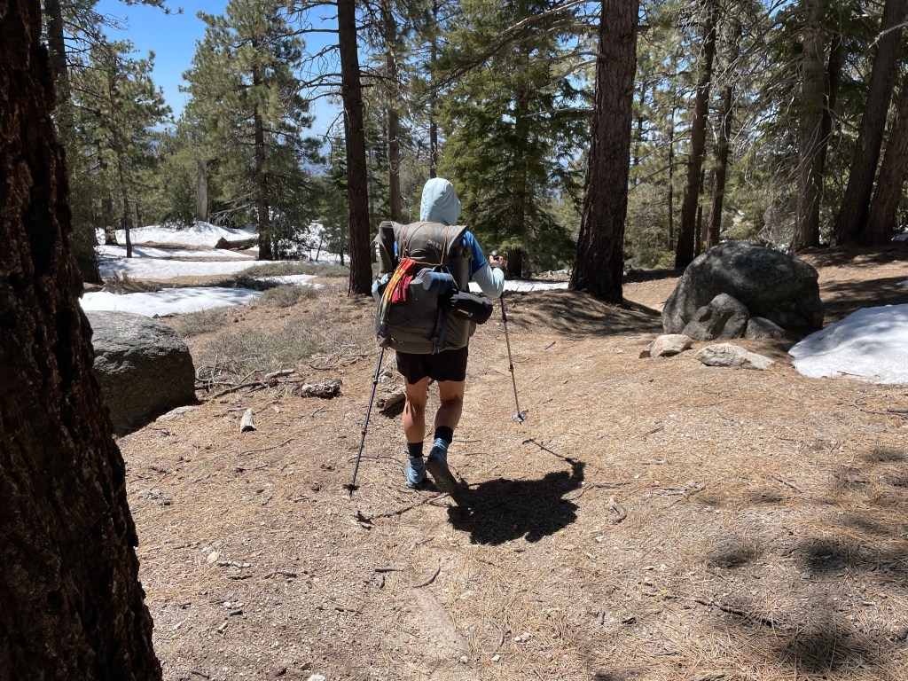 From camp we hiked 6.5 miles up to Mt Laguna over 6000 ft elevation, into the pines and some areas of lingering snow. A week prior hikers were postholing in the snow. Now most of the snow was gone.