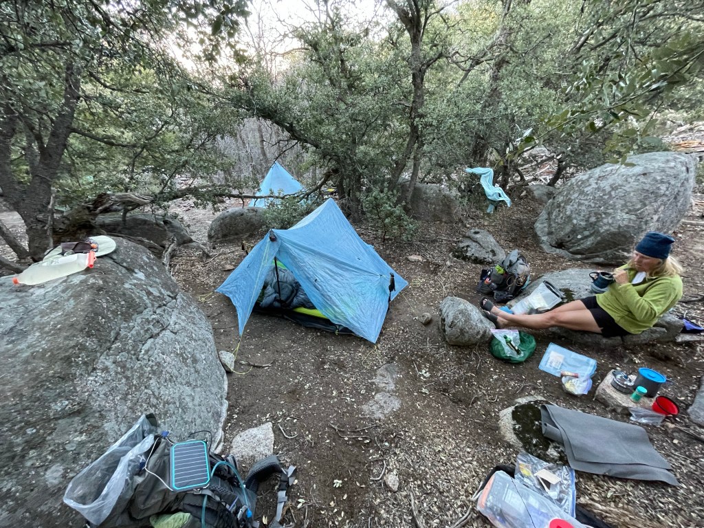 With 10 miles remaining until our intended campsite, we stopped at a small trickle of water. This would be the last water source for the day and into the next morning. Tonight we’ll be dry-camping and so we all carried out 3.5 liters to get us through today’s hike, evening meal, breakfast, and hike out tomorrow morning.