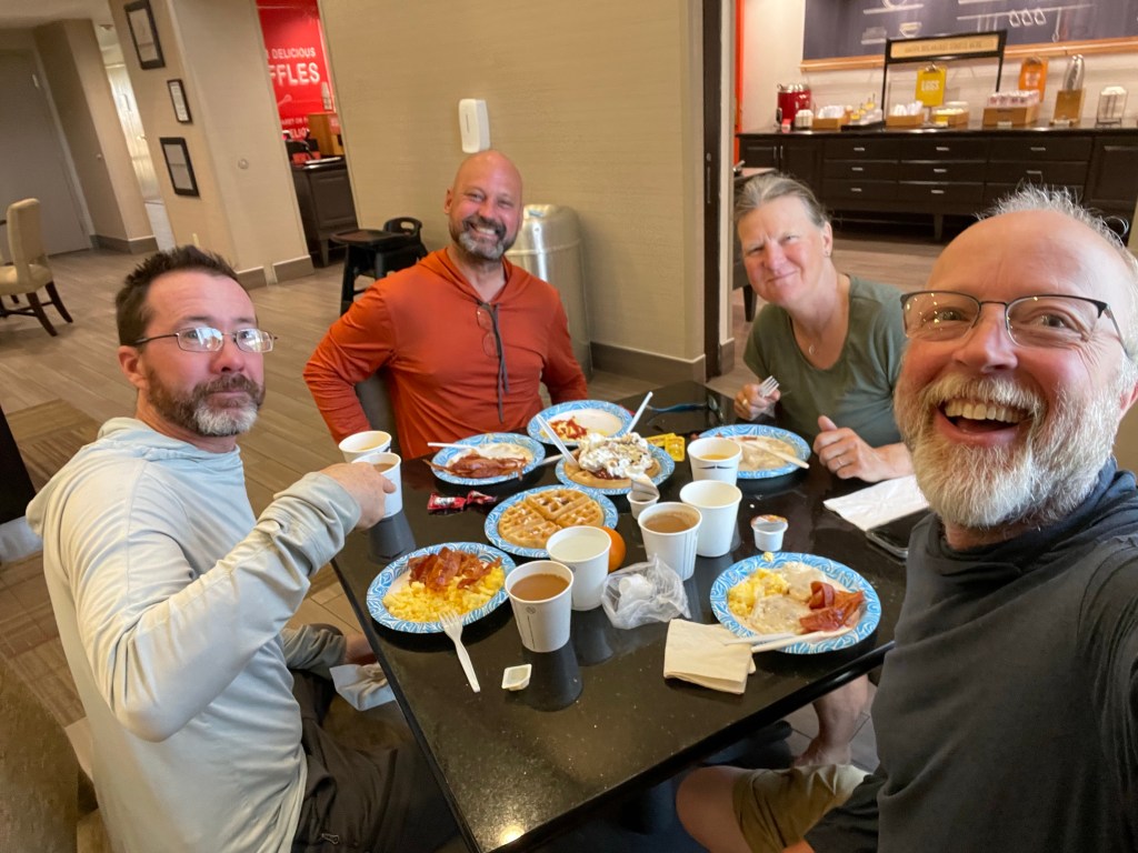 That brings us to Ellen’s new trail name. The night before during dinner, Ellen took the lead in making sure there was enough money for the waitress since they didn’t do separate checks for nine people. Then at breakfast she again took over in the kitchen. So, she was gifted a trail name of “Take Charge” or “TC” for short.