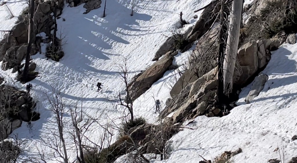 As the afternoon went on we got a beautiful view of Big Bear Lake with the snowy mountains. We also had cell reception and decided to make some calls. As we were both talking on the phone we totally missed the sharp right turn for the trail and ended up in a side trail with a bunch of day hikers. We realized our mistake and turned around. We lost a half hour of hiking while being distracted when on the phone. Lesson learned!