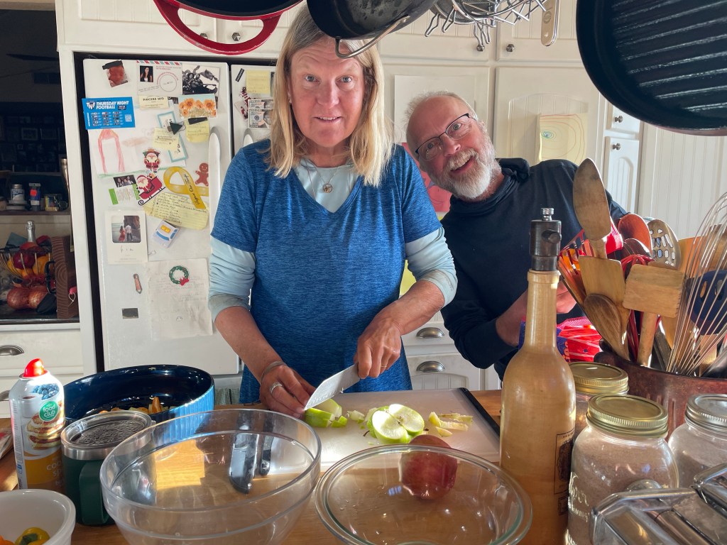 Since we are a couple, Kenny gave us the “Princess Room” with a private bath. Very nice. We got to sleep-in a little since we weren’t going back to the trail until after breakfast. Kenny was up early making breakfast for everyone: bacon, eggs, potatoes, sausage, and waffles. Kenny has a yearly contest on which hiker makes the best fruit salad. He kept asking if anyone wanted to make fruit salad and no one jumped. Finally Ellen decided that having some fruit with breakfast sounded good. With the help of Jeff, we put a basic fruit salad together and then Jeff made the scrambled eggs.