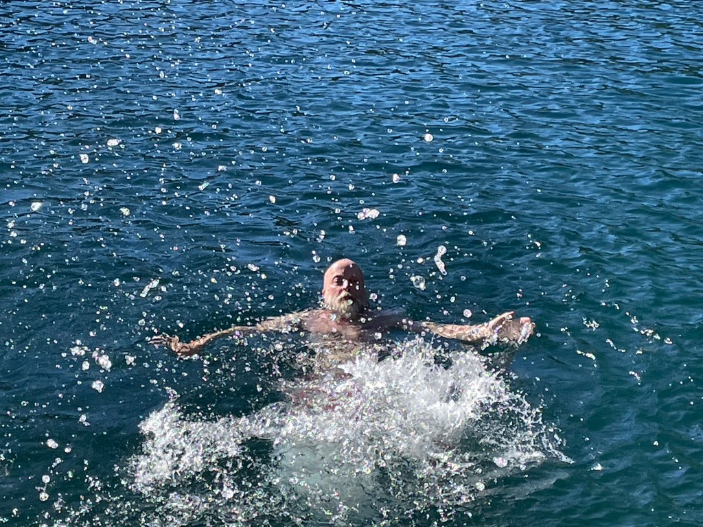 We made it to gorgeous Blue Lake with enough daylight and sun to go for a swim. The water was really clear and the shore had a rocky platform to jump off. It get great to rinse off after a hot and sweaty day of climbing. We had our biggest day of climbing, almost 6000 ft.