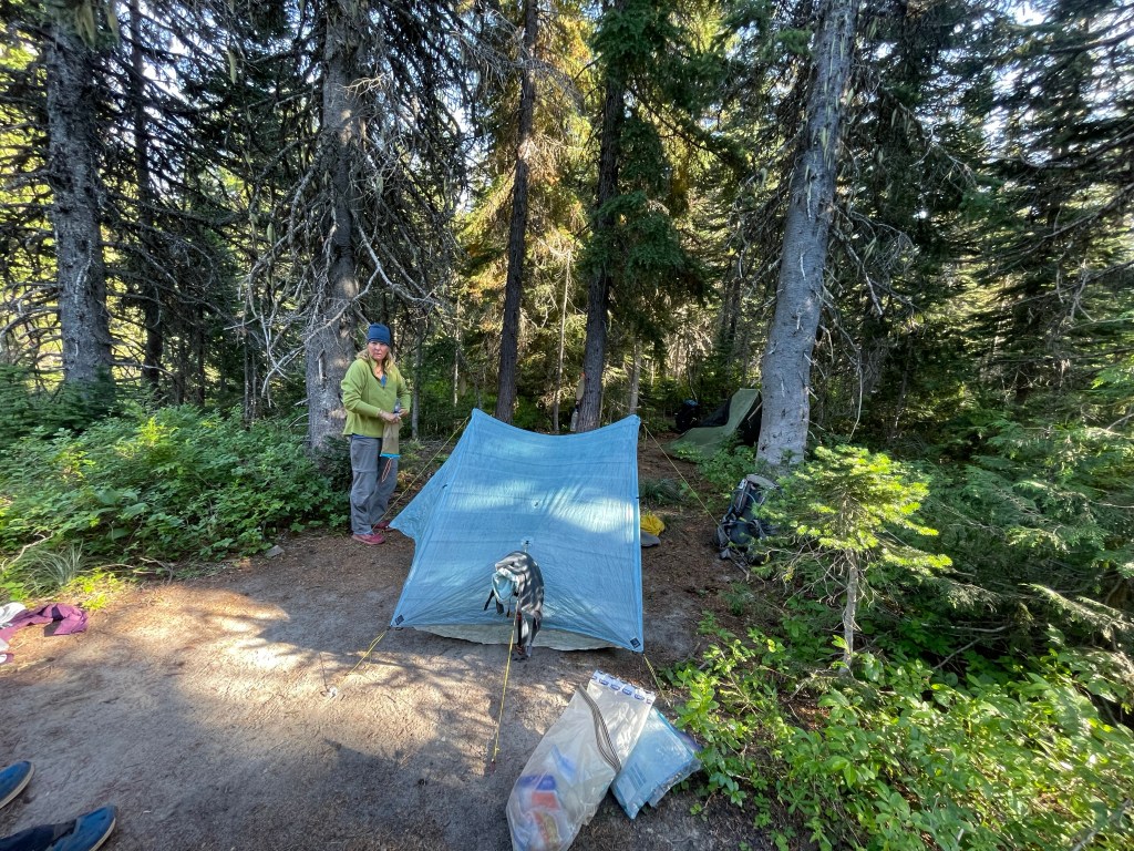 The same three ladies camped on the ridge two nights ago were also now camped here at Blue Lake.