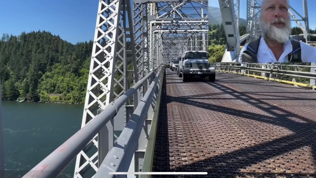 After breakfast and the post office we took the bus from Hood River back to Cascade Locks. As we got off the bus we saw Sherpa Cheryl and TownStop. They were on their way to Portland to visit Sherpa’s husband and Townstop’s fiancé. We also saw Went by the post office. We enjoyed a quick reunion with him and then started walking to the bridge.