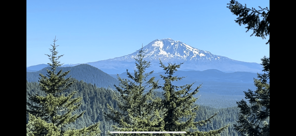 As we crested a ridge, we had a view of Mt. St. Helens on the west and Mt. Adams on the east.