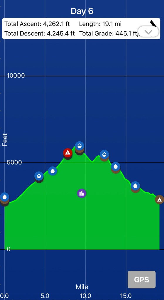 Start: Milk Creek – 2527.7 End: near Miner Creek – 2546.4 Miles: 18.7 Start: 6:27 am End: 6:04 pm