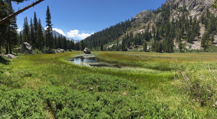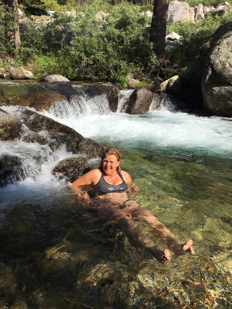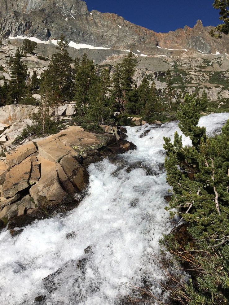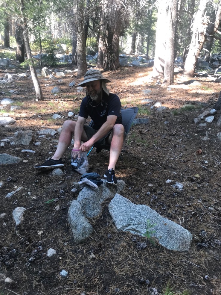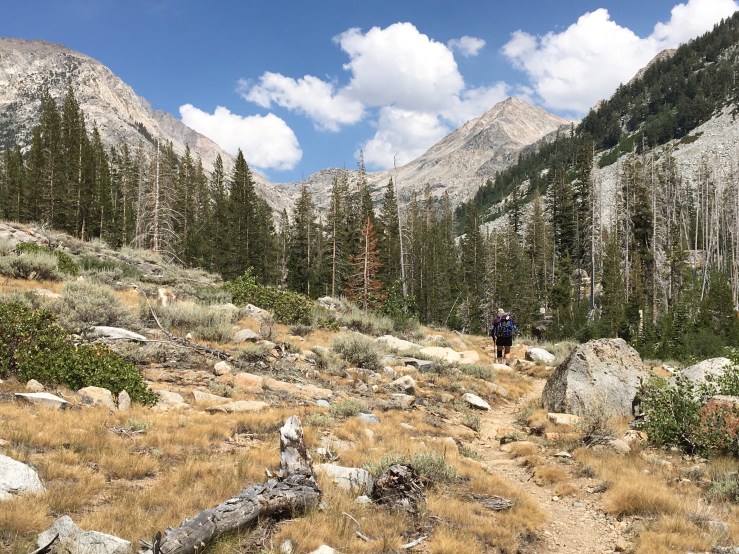Then it was time to continue down the mountain, an 8.8 mile hike. About halfway we ran into Josephine, a girl we had met earlier before the climb up to Evolution Valley. We chatted and learned that she had not seen the Dutch boys, Joep and Luuk, since the creek crossing a couple of days ago.