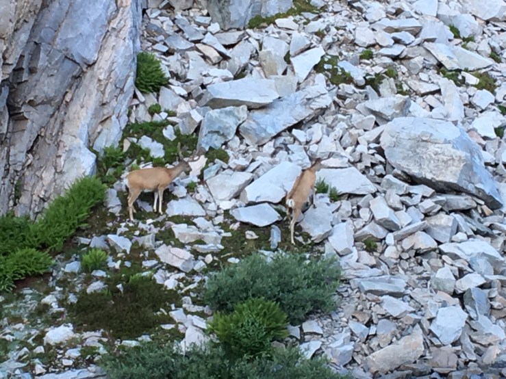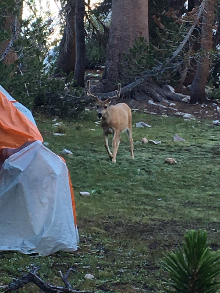 The day started out a little strange. We’ve learned that deer and marmots in the Sierra really don’t care about us hikers. This morning two young bucks walked into our campsite without a care in the world. They are cautious but not at all afraid.
