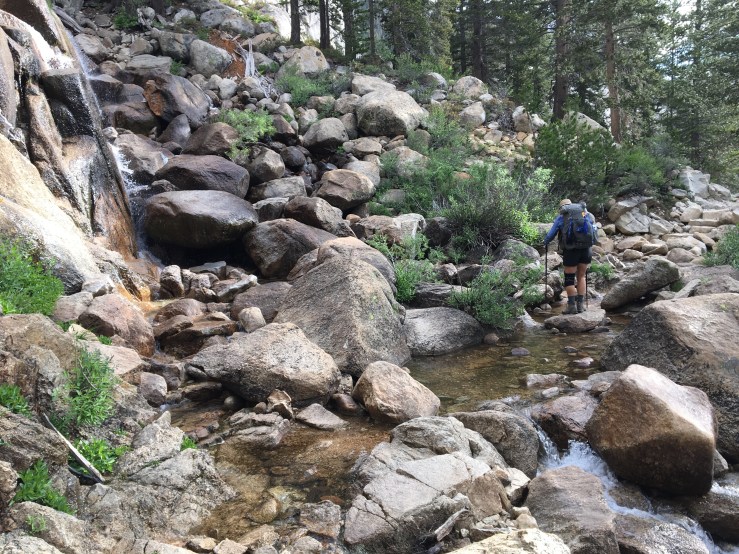 We continued our way down Silver Pass. We switchbacked down the side of a mountain next to a waterfall into Pocket Meadow.