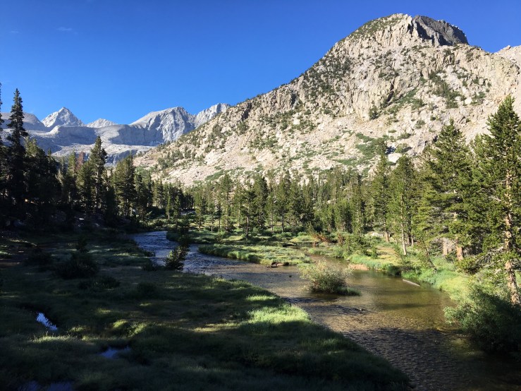 Today’s goal was to get over Forester pass before noon and then make our way to Tyndall creek. First order of business was to cross Bubbs creek. No problem – just a rock hop.