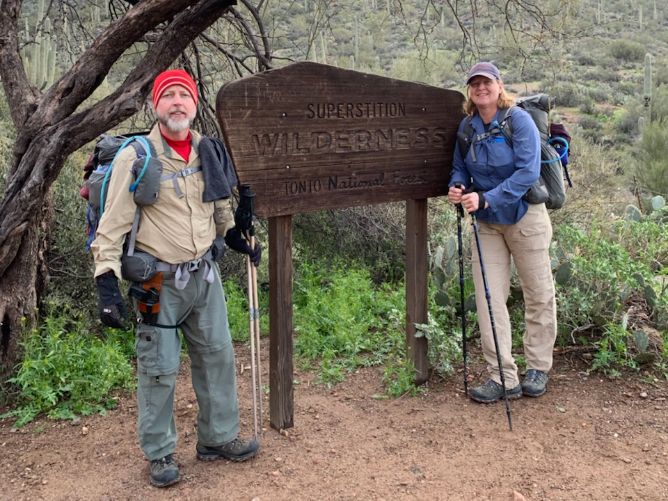Day one starts with the obligatory trail-head picture. The weather was in the 40s and partly cloudy. We finally got on the trail around 7:45 am. We followed Dutchman trail for about 2.2 miles until the intersection of Coffee flats trail.