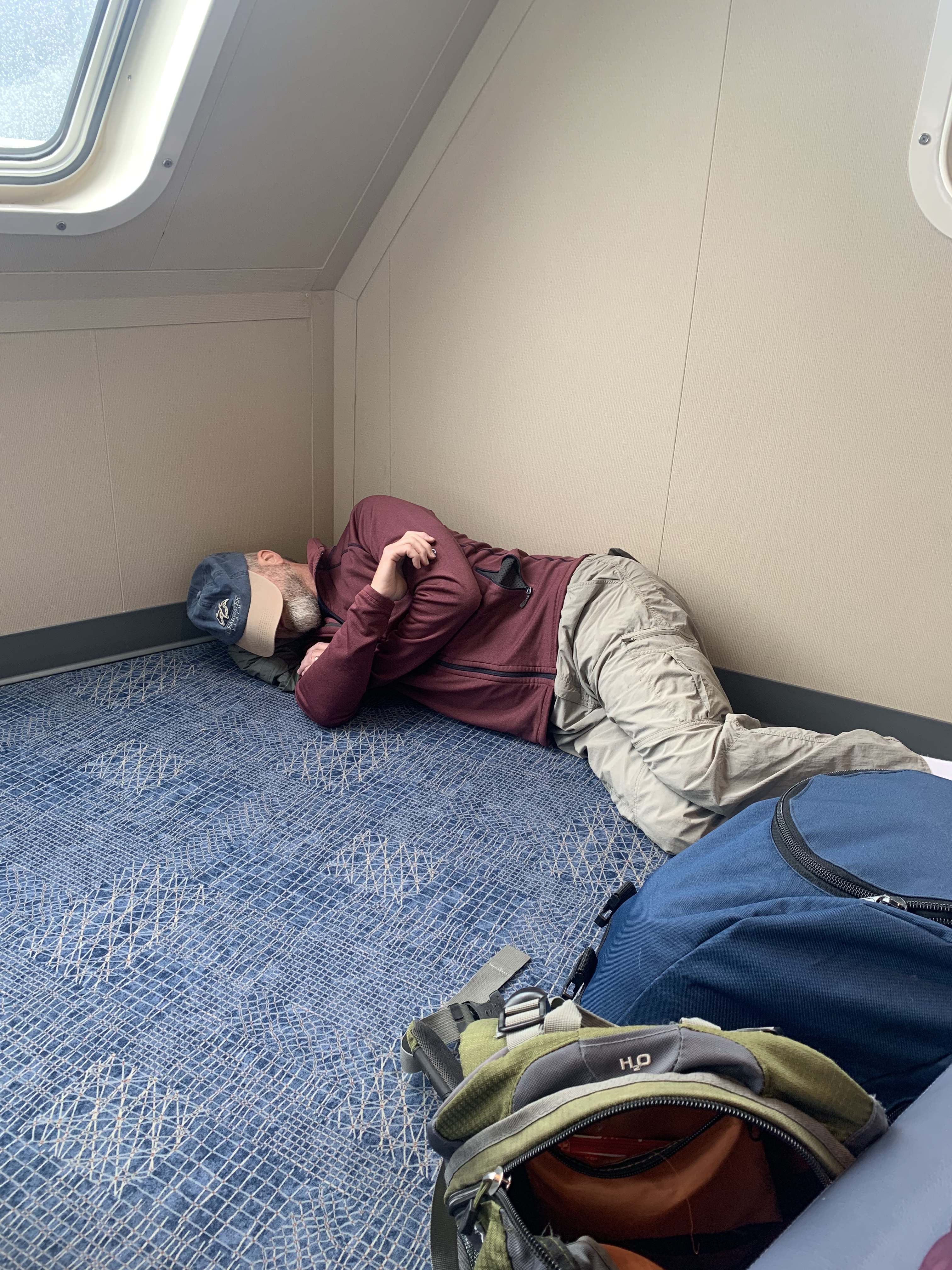 It was a cloudy misty day but still beautiful. The clouds hung low covering the tops of the mountains. We were both tired and took naps on the ferry.