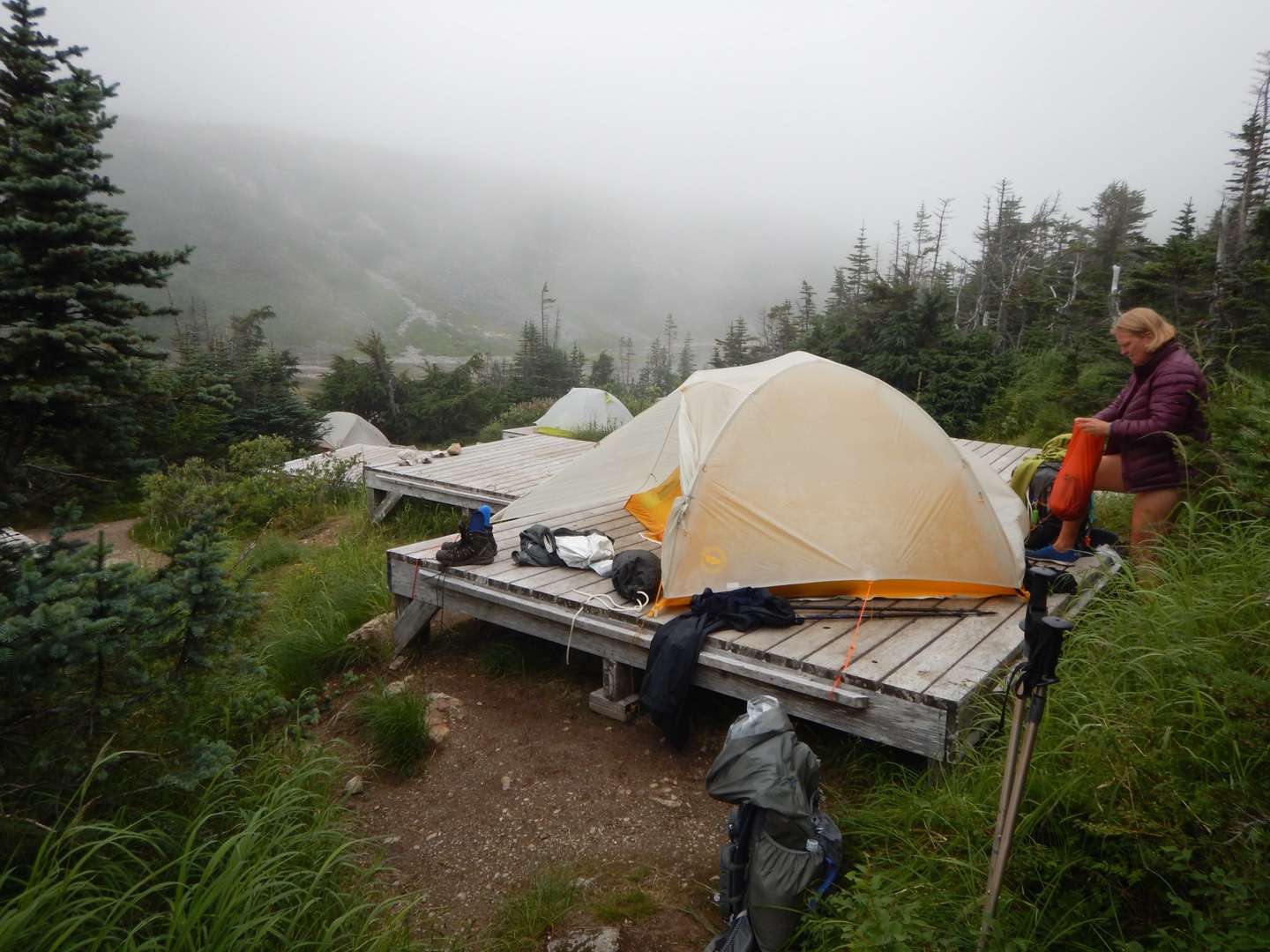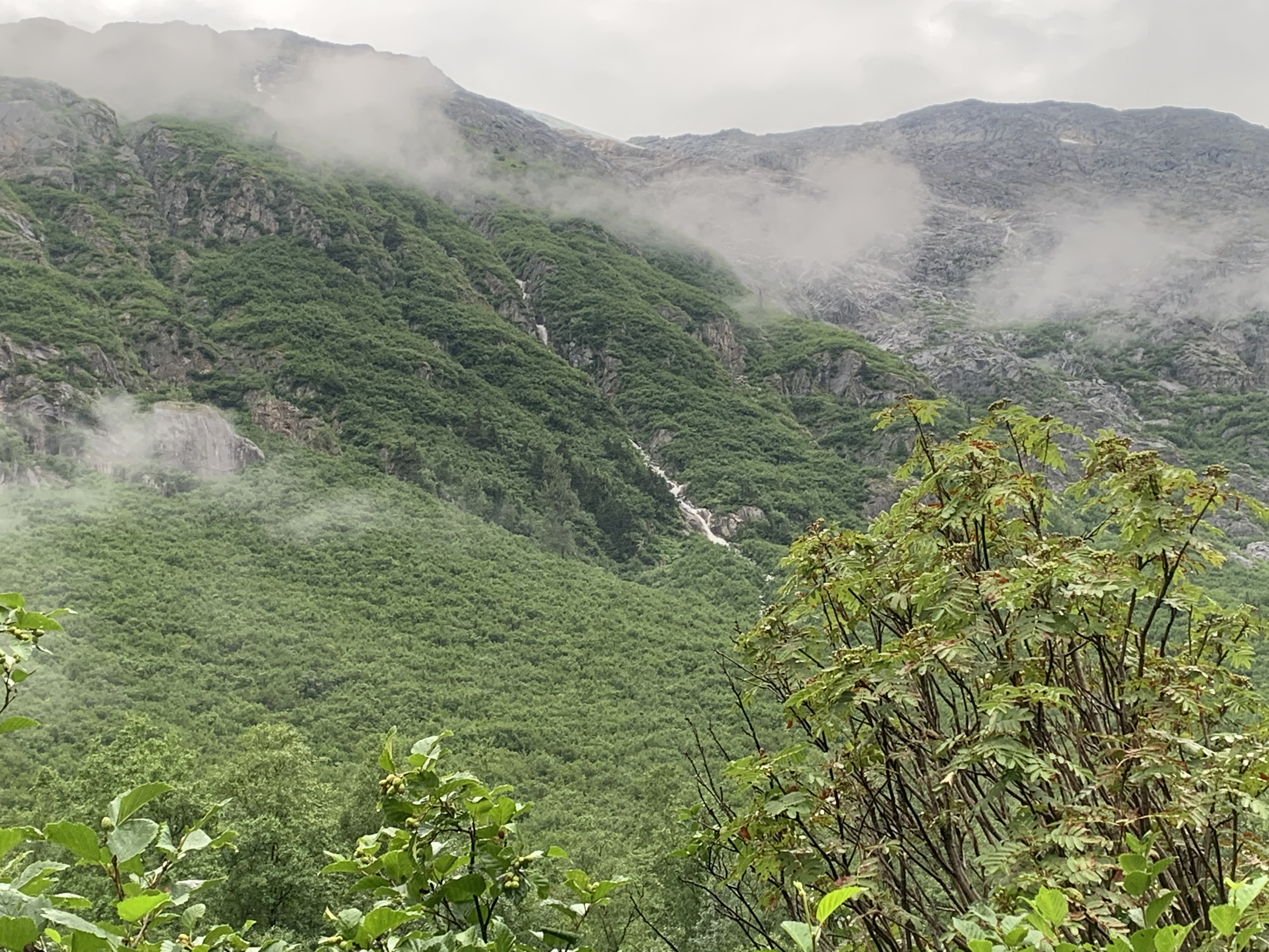 After a rain soaked night we woke up at 5am, made breakfast and were on trail at 7:11am. The trail started steeply uphill through a narrow path with lots of blueberries. Perfect bear habitat! It was slow going as Ellen did not have much energy.