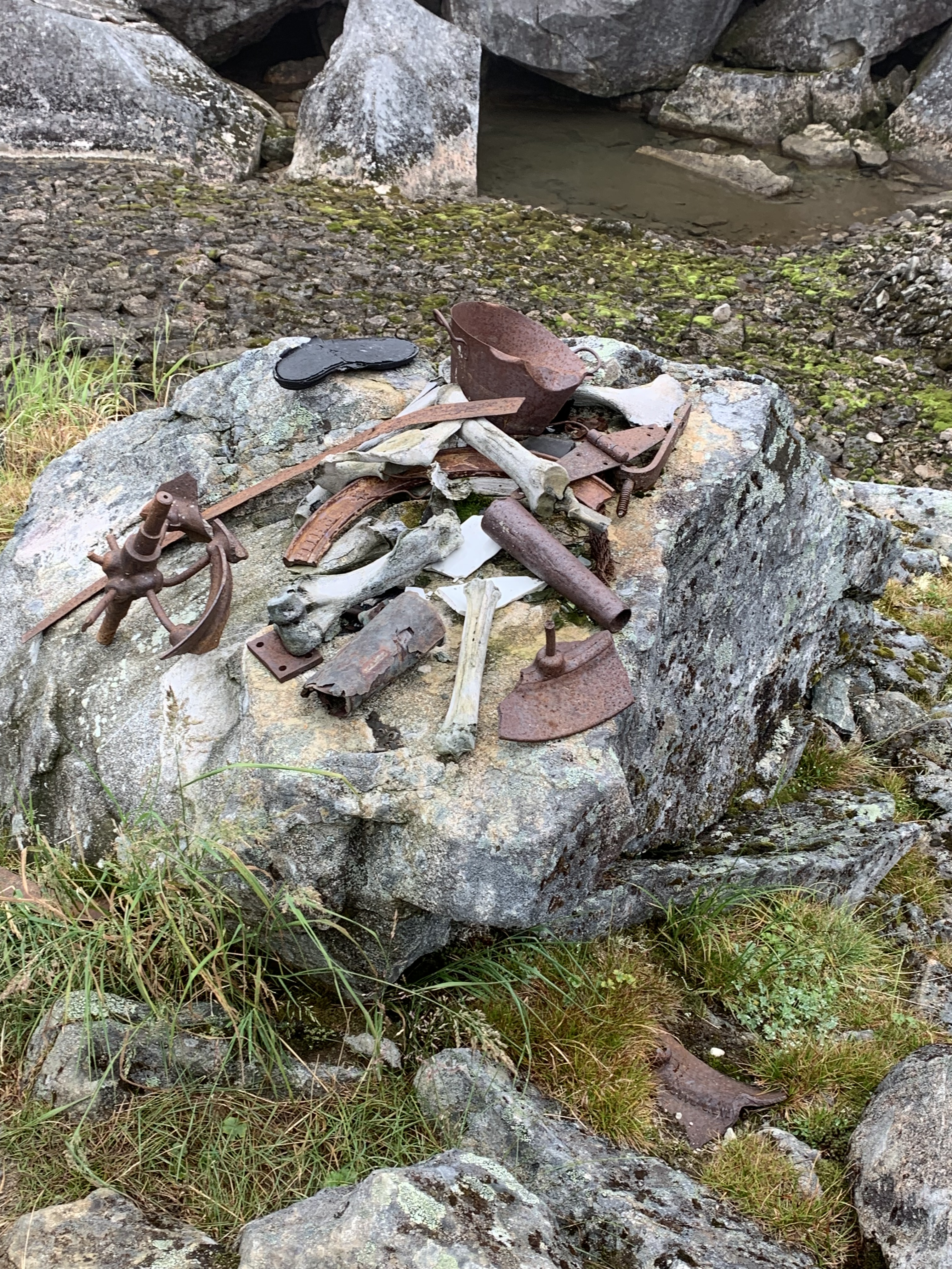 We finally reached “The Scales”. This is where the prospectors had to stop and weigh their gear and provisions before proceeding up the “Golden Staircase” over Chilkoot Pass and into the Canadian Yukon. Prospectors were required to have “a ton” of food and gear – enough to last a year. The ground was littered with rusty relics.