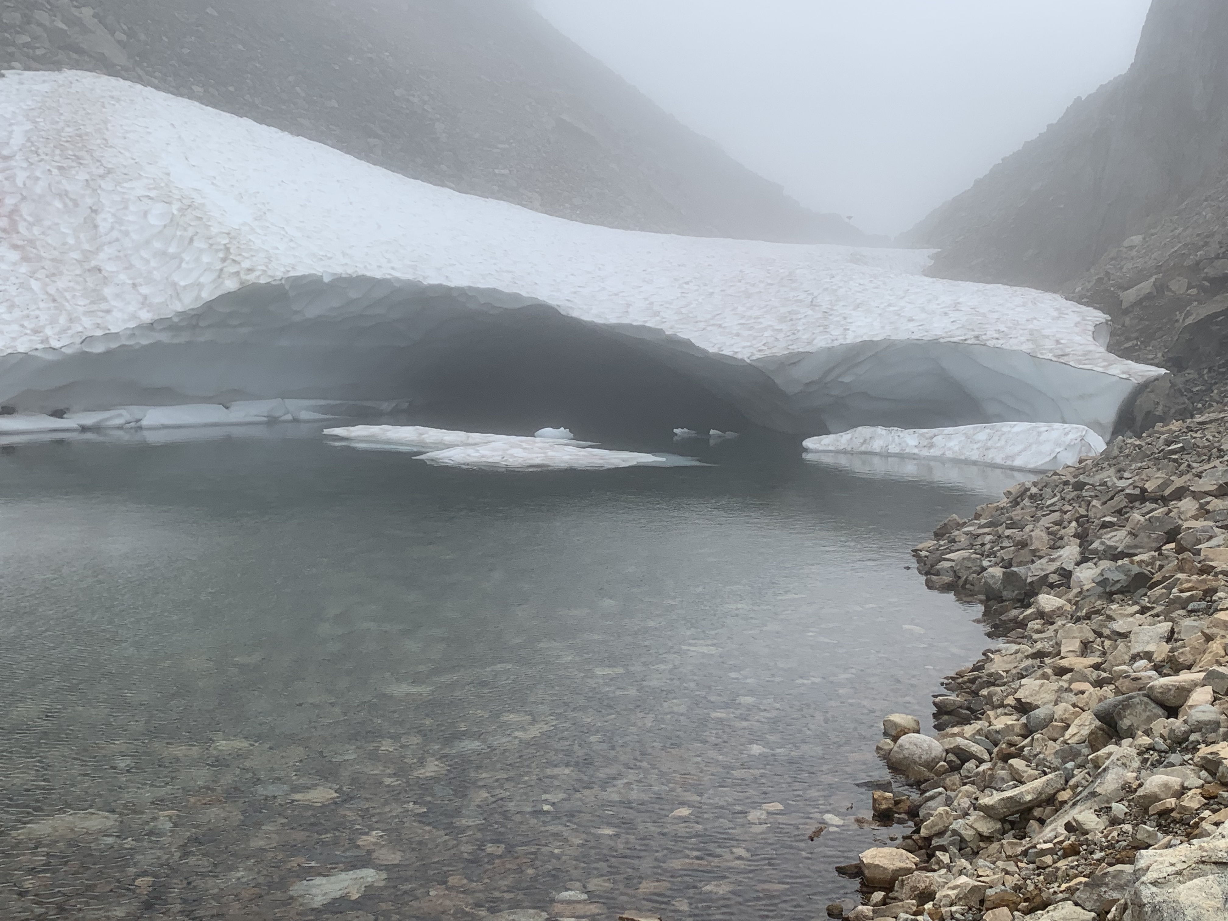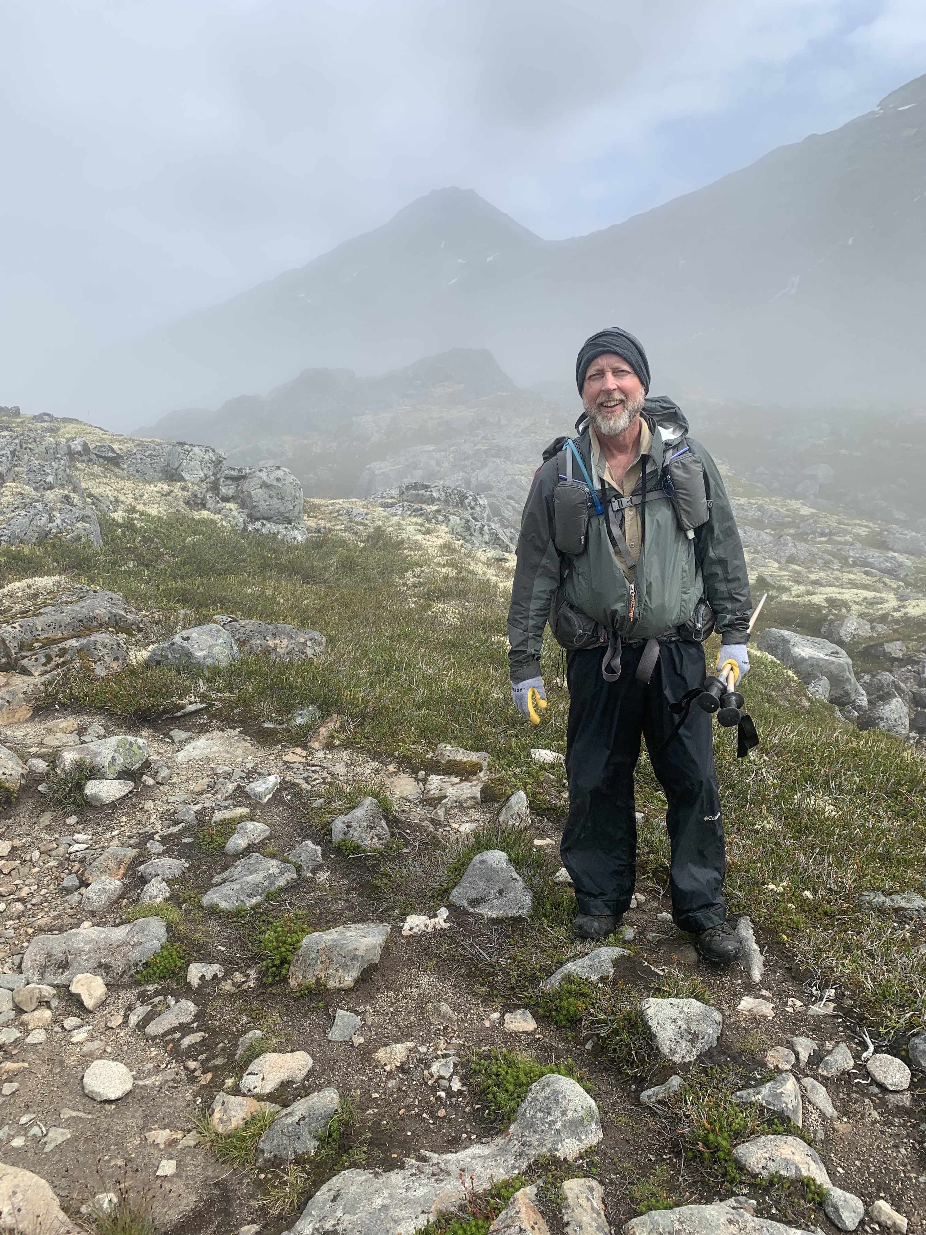 The fog and clouds were filling in below and seemed to be chasing us up the mountain. There were lots of waterfalls, creek crossings, and talus fields (broken rock).