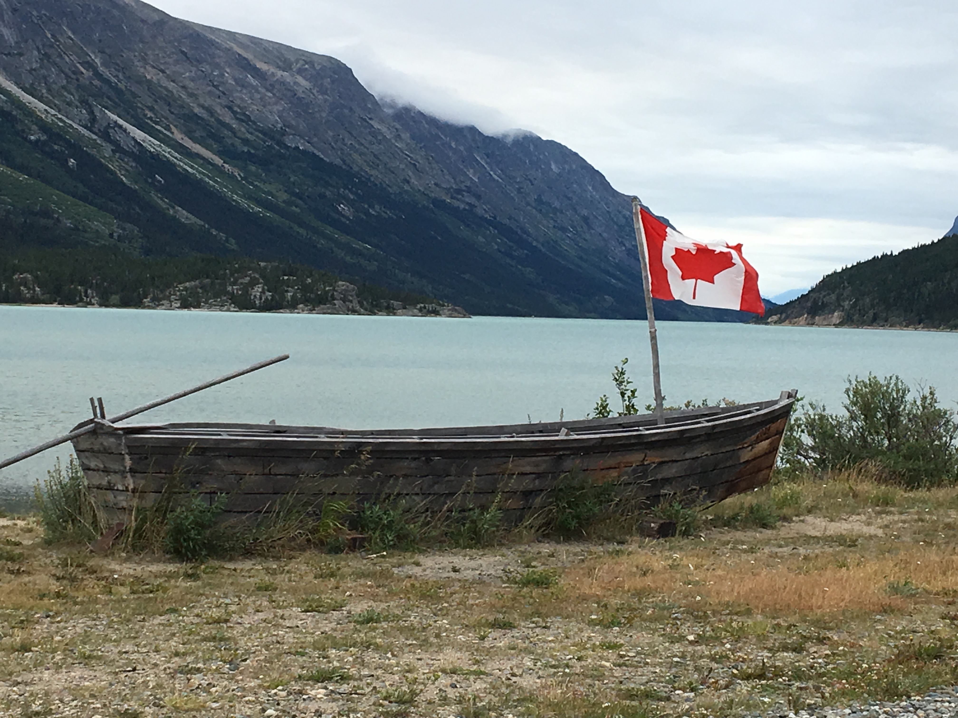 Since we only had 3 miles to go today, it was a lazy morning with a start at 8:25 am. About 15 minutes from camp the word “bear” was written on the trail twice by Frank and Kelly who had started earlier in the morning. We both immediately started singing and being very loud. Cody and Emma caught up with us within 5 minutes and decided to walk with us the rest of the way. It was an easy walk to Bennett and time went by quickly as we talked with Cody to keep our noise level up. As we got closer to Bennett there were several more buildings from the Klondike era.