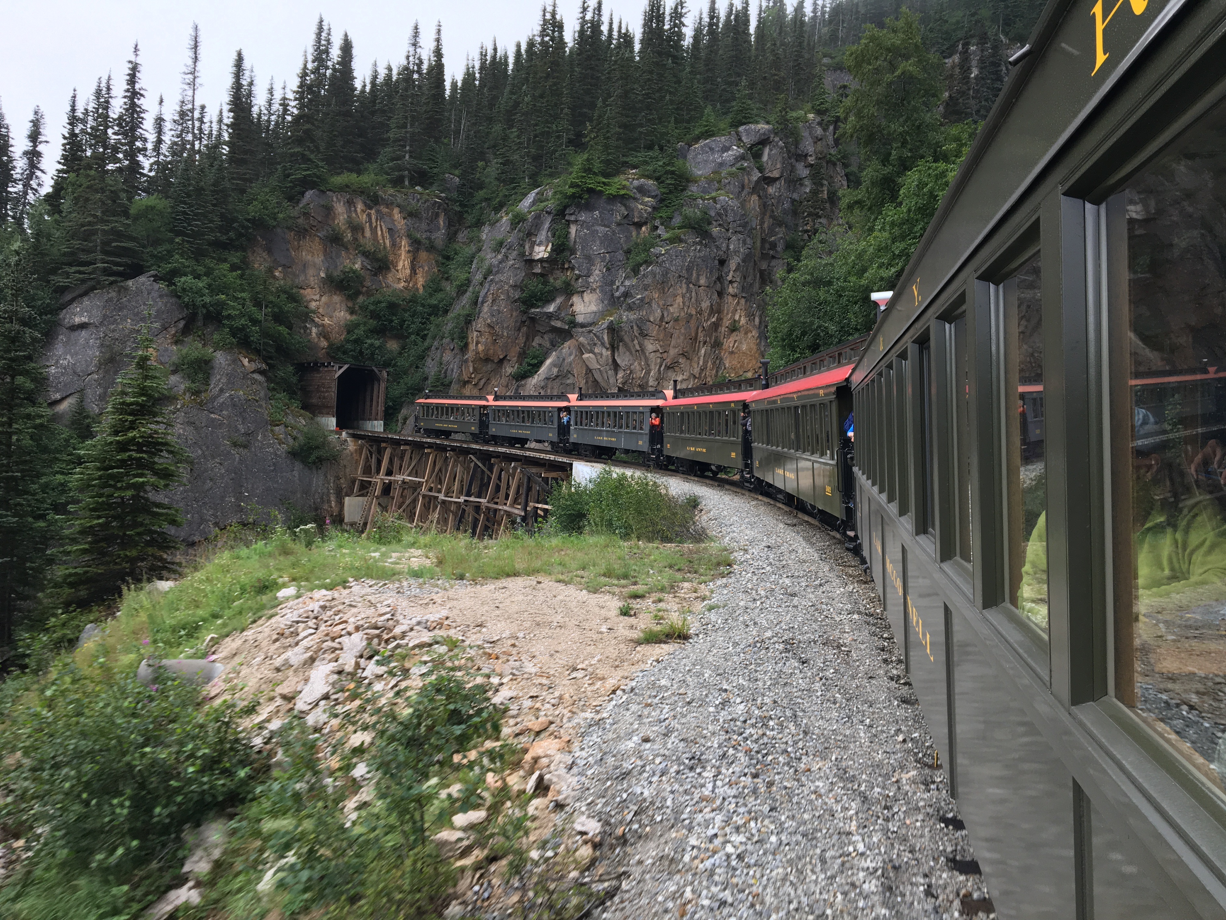 Around 3:15 it was time to take the train back to Skagway. It was a scenic 2 hour ride, although foggy at times. We stopped at US/Canadian border for conductor to turn in the paperwork for all the hikers. We got to Skagway around 5:30 pm where US Customs came on board to check everyone’s passport.