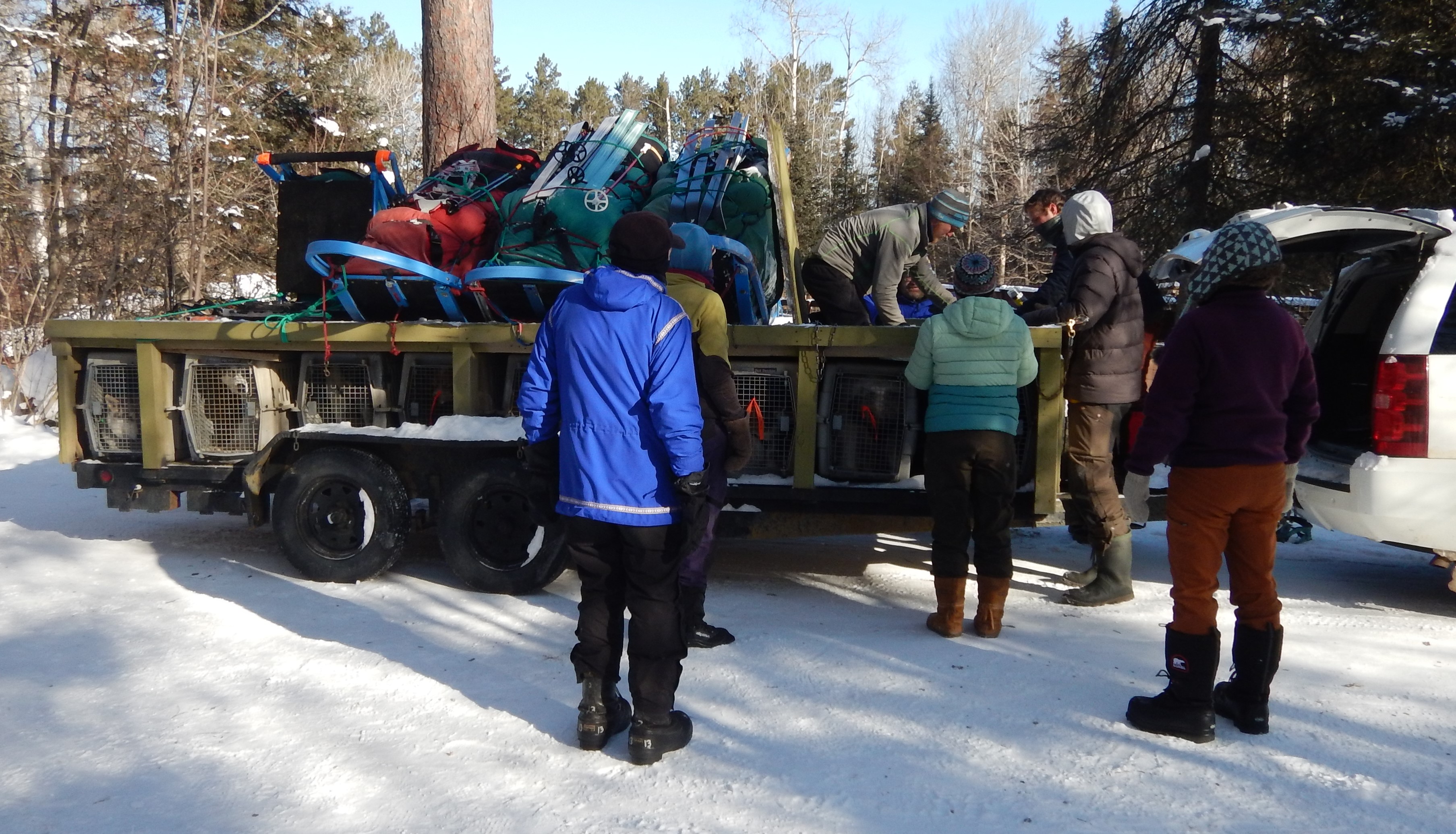 Trailer with dogs and sleds
