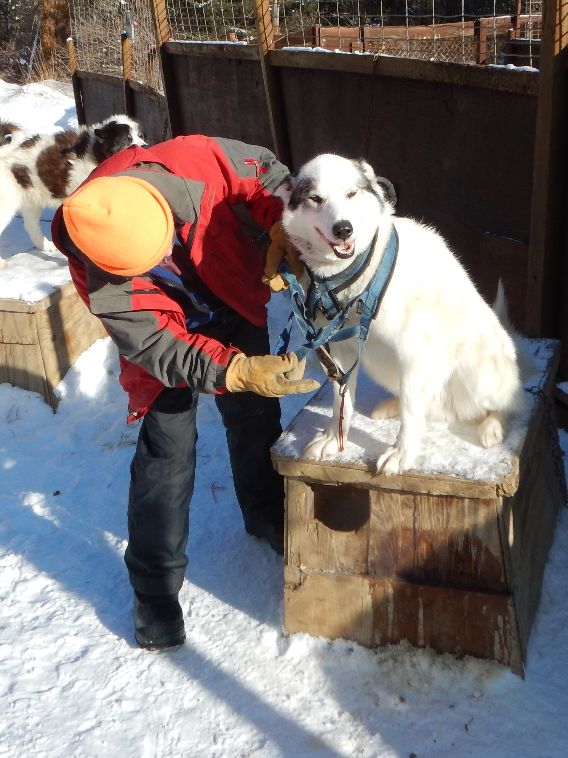 Jeff harnessing a dog