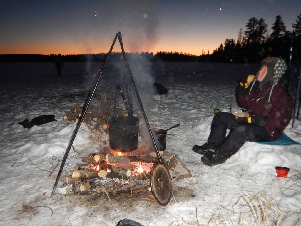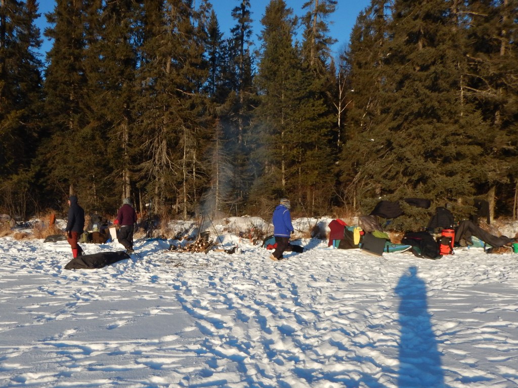 As morning broke we reluctantly left our bivies to answer nature’s call and to make a fire to cook breakfast and warm up. We knew that this night would be cold but our guide’s radio communication back to civilization confirmed that the temperature had plummeted to at least -36 degrees! In these conditions one needs to think ahead and plan how to execute any tasks which require even a brief removal of mittens or boots. Removal of your liner gloves is not advised for any reason. Our mood was upbeat and we all agreed that enduring this extreme cold night gave us renewed confidence. We knew that we would not just survive the coming days but actually thrive and enjoy this winter experience!