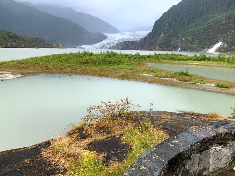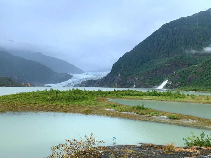 It was time to leave this beautiful area and take the ferry back to Juneau. We left early and after a four hour boat ride we were back in Juneau. We did not have a car so we use Uber to get around. After checking into our Airbnb, we wanted to check out the Mendenhall glacier. This was one of the glaciers we saw on our first day in Alaska as we took the ferry to Skagway. The Mendenhall glacier has been retreating very fast over the past 100 years.