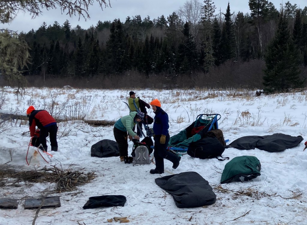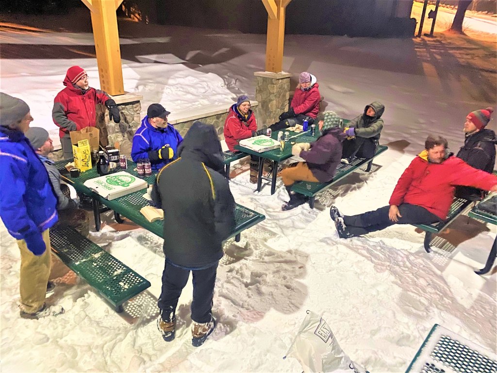 After returning to Wintergreen Lodge we said goodbye to our dogs and unloaded the sleds and equipment. We drove into town and checked into the Adventure Inn, our favorite place to stay in Ely. That evening we met our guides and fellow team members in the city park down by Shagawa Lake. Normally the post-trip farewell dinner would be a fine affair in the Wintergreen Lodge but during the pandemic we settled for pizza in the park … and that was OK.