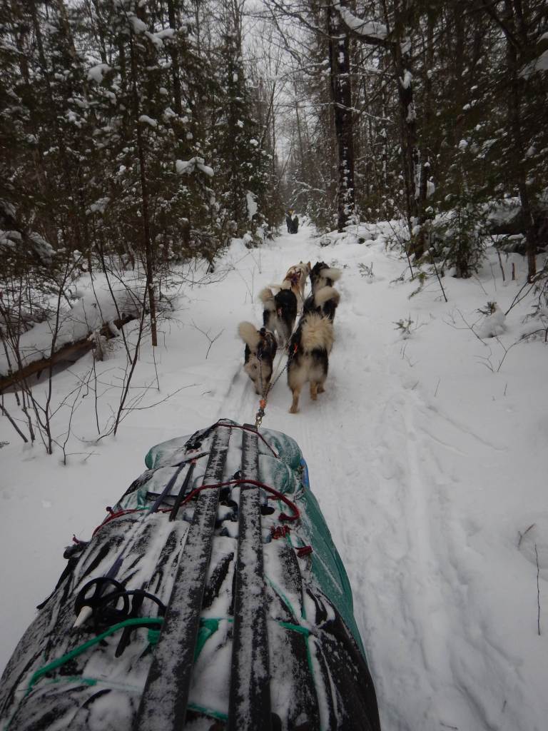While we were on trail, Homeland Security became curious about the dog truck & trailer we left at the Angleworm Trailhead parking lot – they’re not used to seeing dog teams in that area & they assumed we were up to some no-good nefarious mischief. So they made plans & secured Washington DC permission to track us on snowmobiles to see what we were smuggling into Canada. Fortunately, wiser minds prevailed and Forest Service staff talked them down from this plan – they assured the boys with the black helicopters that it was just Wintergreen out there screwing around.