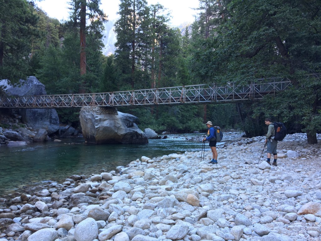 The hike down was uneventful but still gorgeous. We crossed the bridge over the junction of Bubbs and Woods creeks and then we were home free. After loading our gear into the car we washed off in the creek and then drove to Grant Grove to get some lunch … burgers!