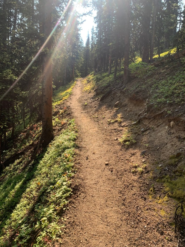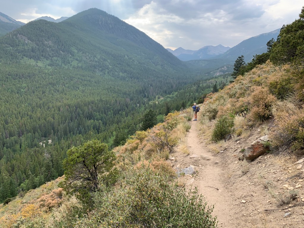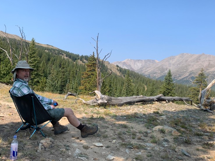 After a very long day yesterday, we decided to take it easy in the morning. We got on the trail at 8:40 am but immediately had to climb 3.3 miles and gain 1,453 feet. It wasn’t too bad since we had fresh legs. We found a beautiful meadow at 11,577’ just before the top of the climb where we stopped and had a few snacks and enjoyed the view.