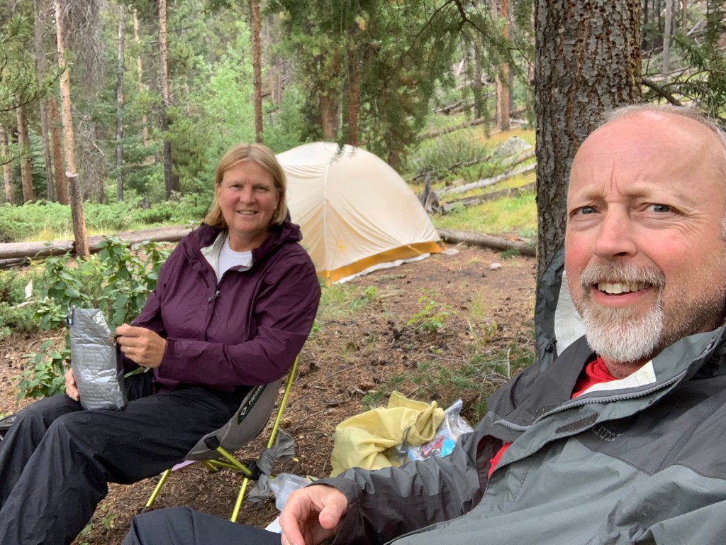 Once at camp it started drizzling again so we set up camp quickly and ate dinner at 5 pm under the partial shelter of a large pine. By 6 pm we were in our sleeping bags. We stared at maps for a little while trying to decide what to do over the next few days. Today was brutal, but we want to enjoy ourselves out on the trail and not get beat up every day.