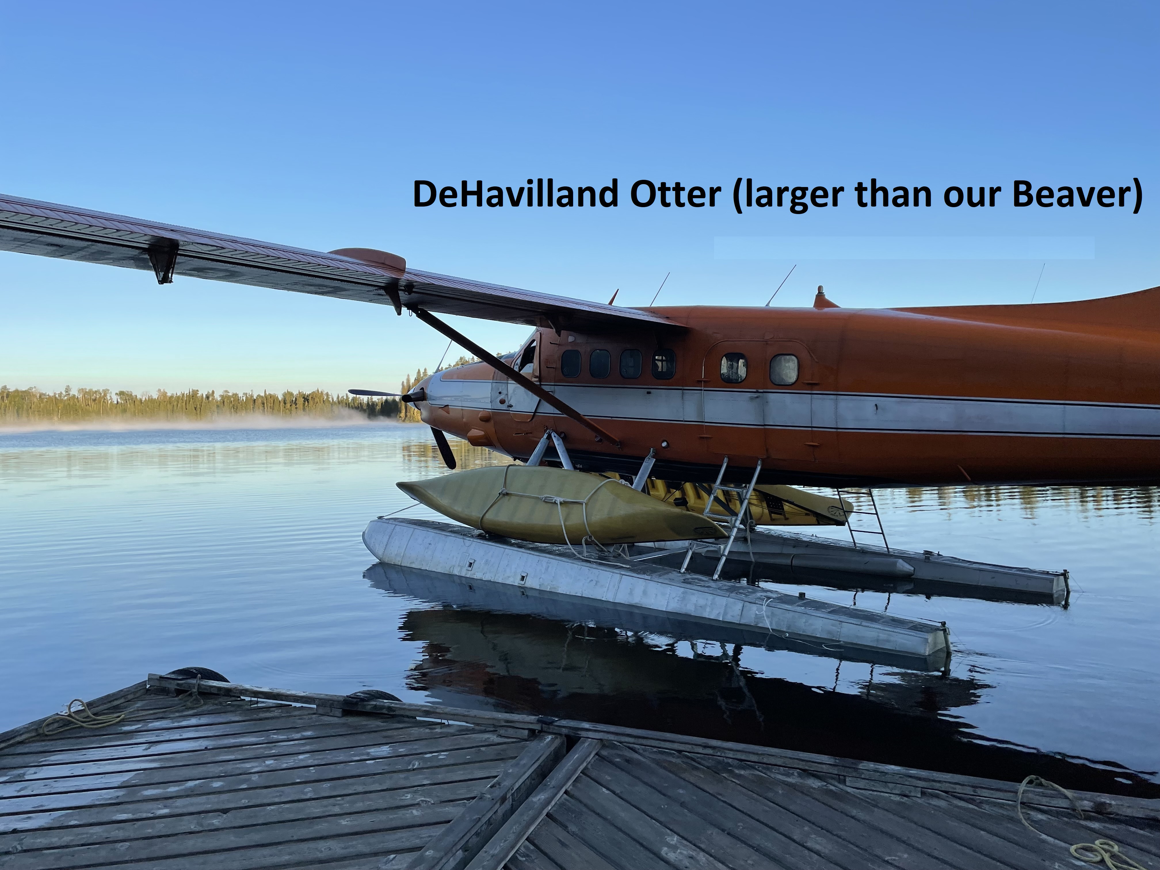 A group of four were flying out in the early morning to start their trip so we saw them off at the dock. We watched them load their gear into the DeHavilland Otter float plane and then the pilot securely strapped their two canoes atop the floats.