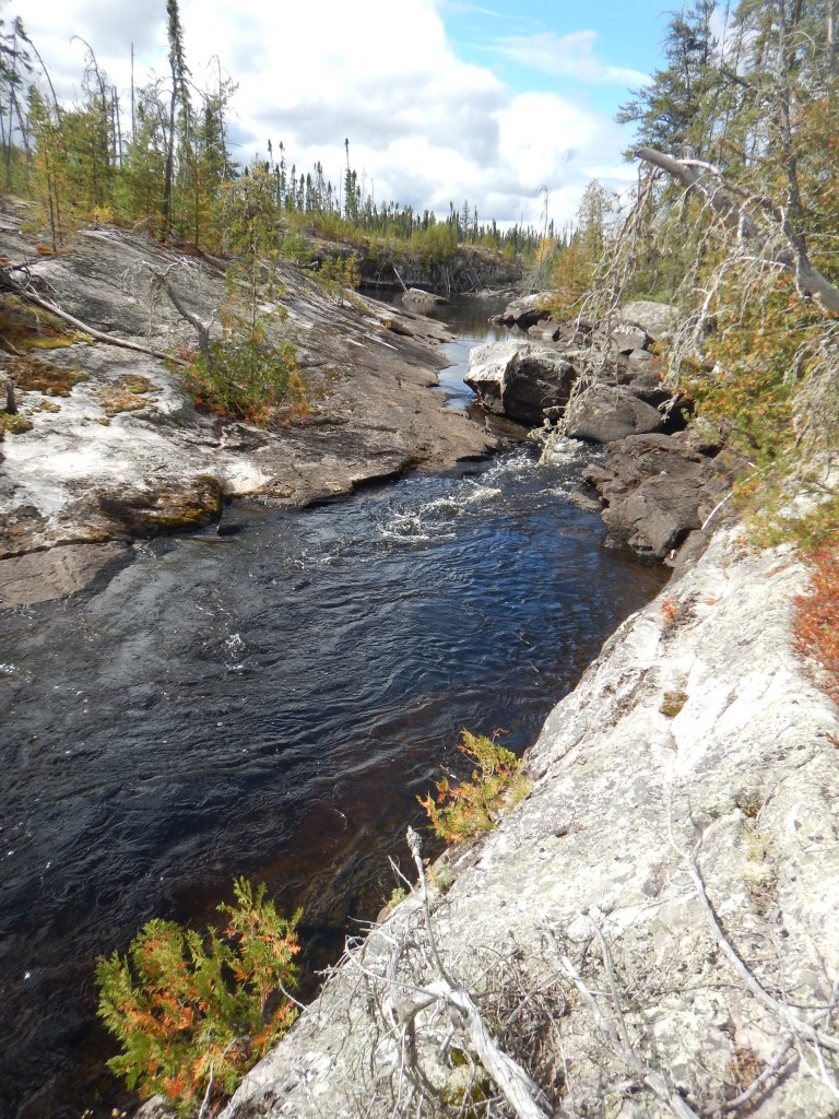 After another quick paddle, there was a short 75 meter portage around a narrow chute with some small falls and then unencumbered paddling for a long stretch until we arrived at our final portage of the trip.