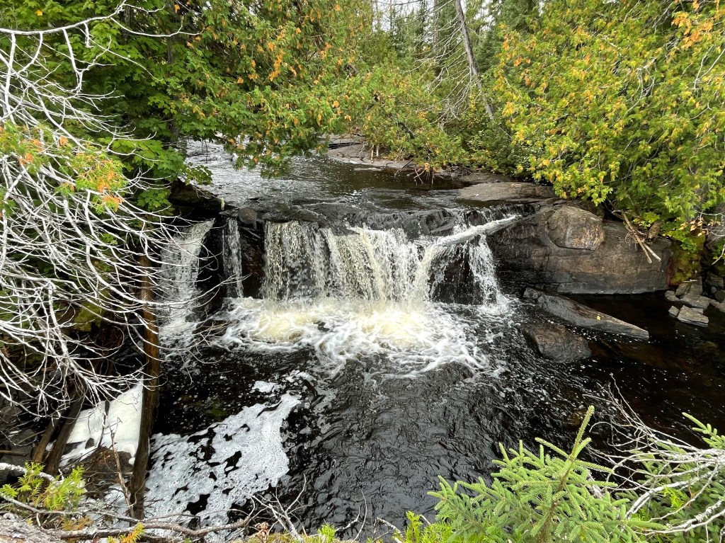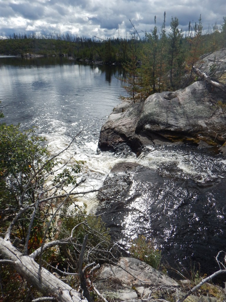 This was to be our last full day on the water as we had planned to make it to the outpost on Burntrock Lake.  We were hoping to find good water levels. We took our time eating our blueberry pancakes and packing up camp. Our first order of business was to portage around the waterfall by our campsite and of course take a bunch of pictures.