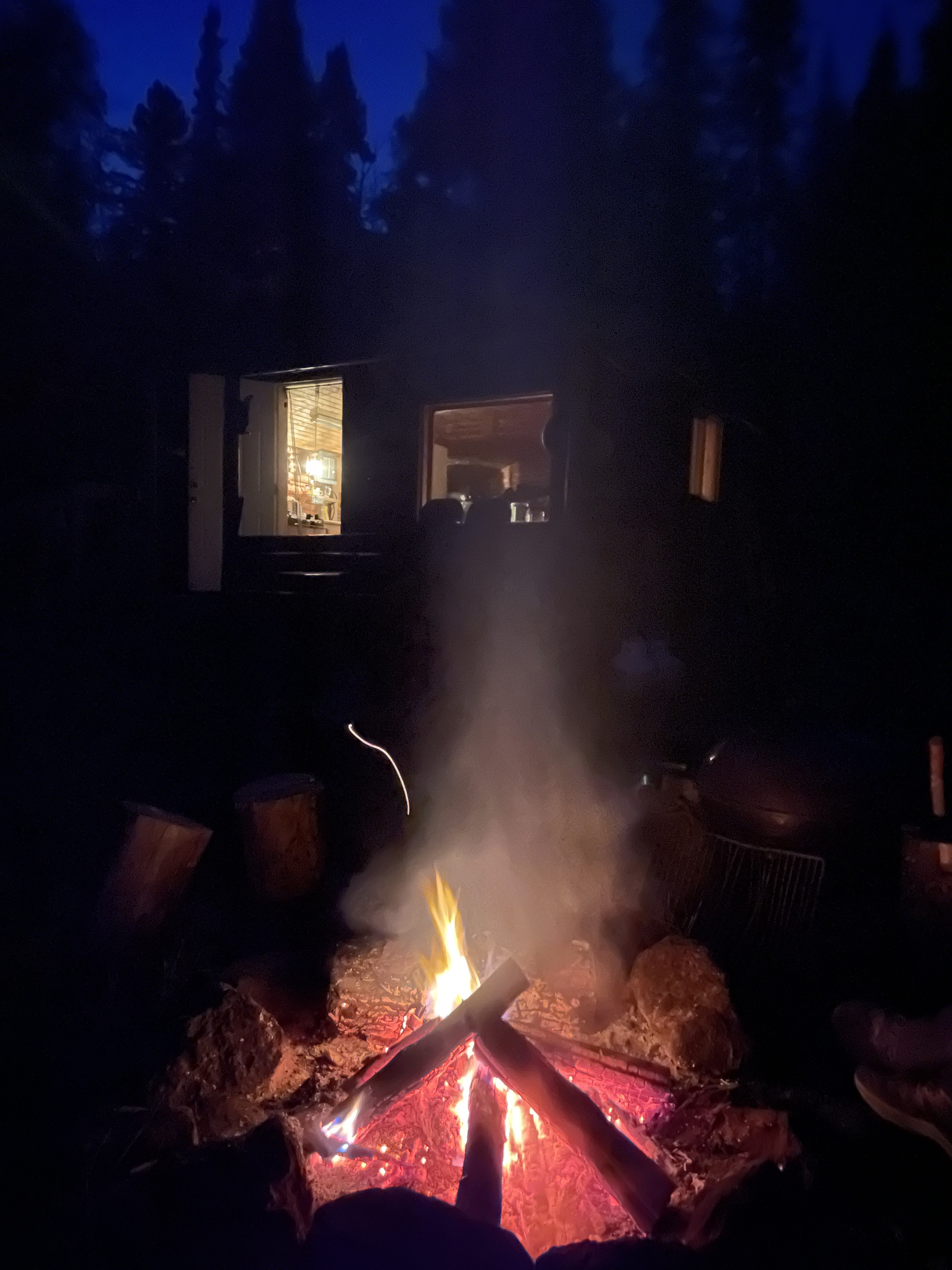 It was sunny out so we set our wet gear out to dry and then paddled out to fish some more. This was supposed to be a great fishing lake.  We both caught a couple of small pike near a rock but no walleye were to be found.  We went back to the cabin and made pizza on the gas stove.  Jeff collected some firewood along the shoreline and we had nice campfire for our last night in Wabakimi.