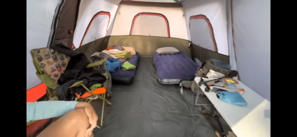 NeedtoFeed had a great set up for hikers. There were 3 large cabin tents each with air mattresses, power cords, and Wi-Fi . We got the Taj Mahal of the tents. It was a great tent including ceiling lights, small table, two separate air mattresses, and two chairs.