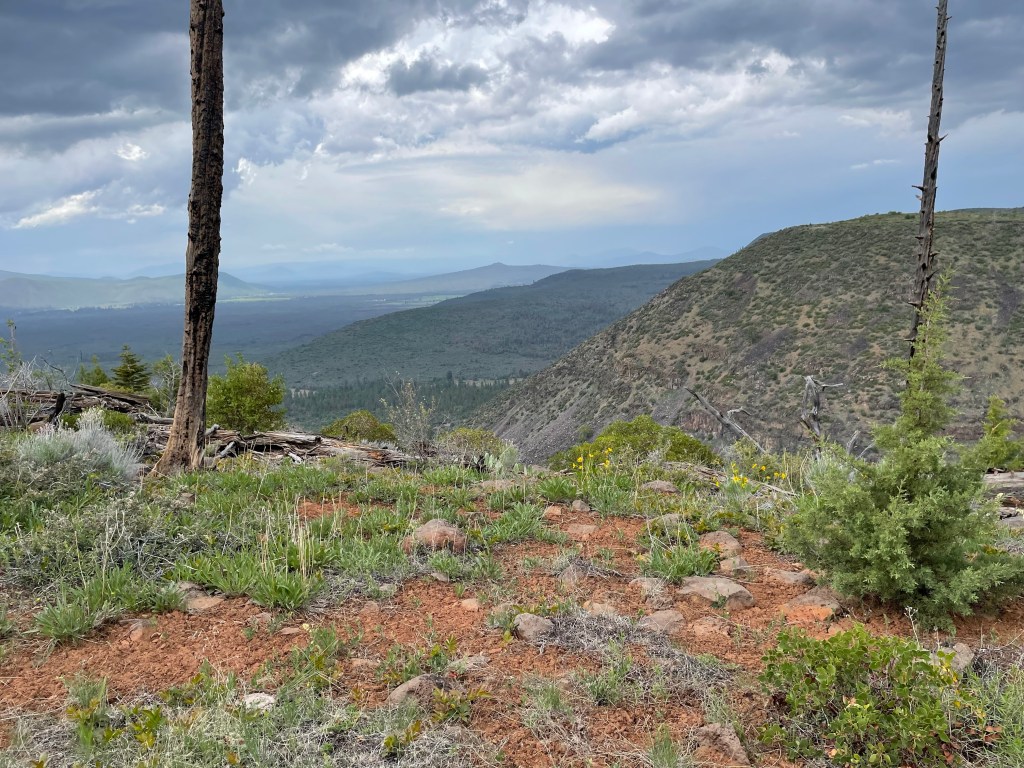 After the lava tube it was time to follow the PCT up over the Hat Creek Rim. We got to an overlook where one can see Mt. Lassen to the south and Mt. Shasta to the north. Both were snow covered. We couldn’t see Mt. Shasta as there were clouds in the area.