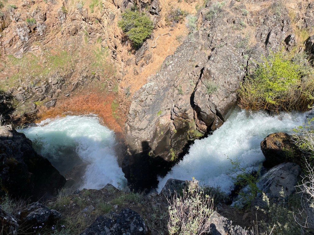A few miles later we came to Rock Creek which feeds into the Pit River. The trail crossed Rock Creek over a wooden bridge just upstream from where the creek plummets over a tall narrow falls. It was pretty spectacular.