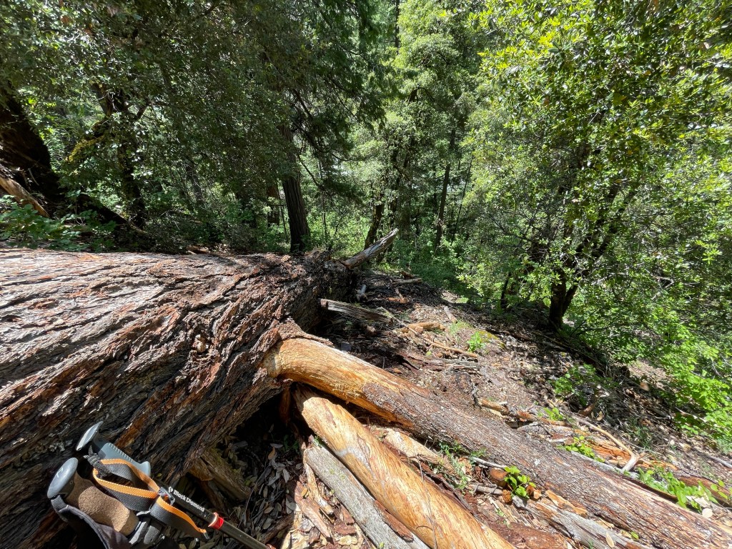 Then we had an incident that could have turned out really bad. A very large tree trunk had fallen down over the trail and it was too big and sloped to climb over. The only way past was to climb down the steep mountain side along side the down tree, then back up along the other side.