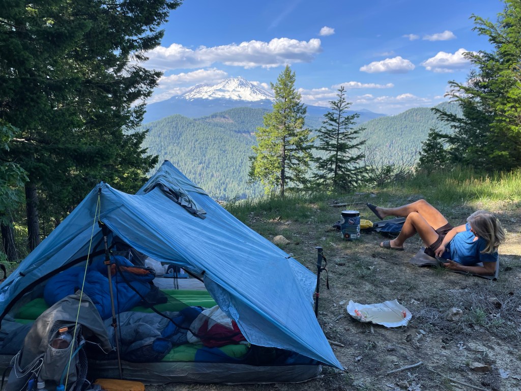 We woke up kind of late – 6:30 am and we were back on trail at 7:42 am. We had a great sunrise view of Mt. Shasta.
