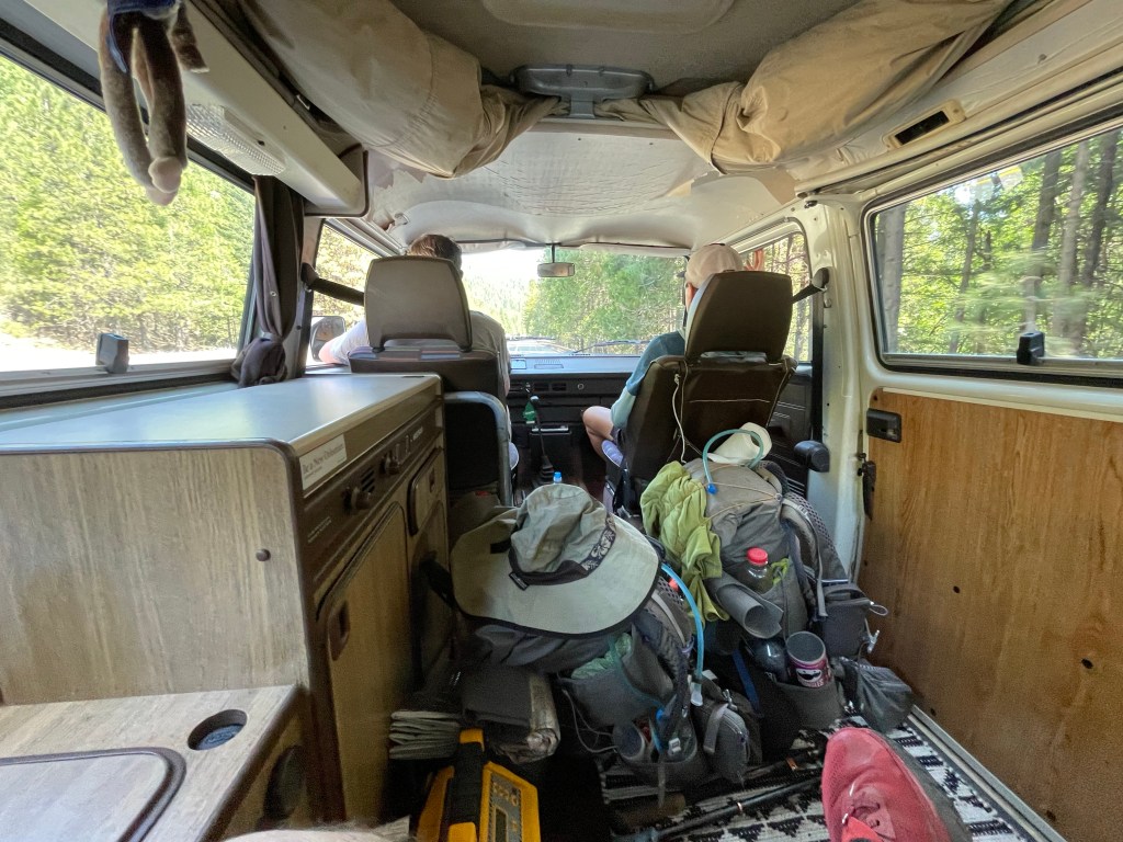 Since we had cell service we both made some phone calls. Our Trail Angel Peter showed up just before 11 am to take us down the road to Dunsmuir. He drove a 1971 VW camper bus which was pretty cool.