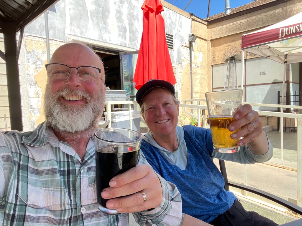We got our backpacks from the hotel, cancelled our room and went back to our little park. We hung around there for a bit and then went back to the brewery for a beverage, a snack, and to charge our phones and battery bank.