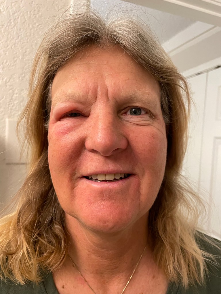 By now ellen also had a raging case of poison oak rashes spreading over her body and closing up her right eye.