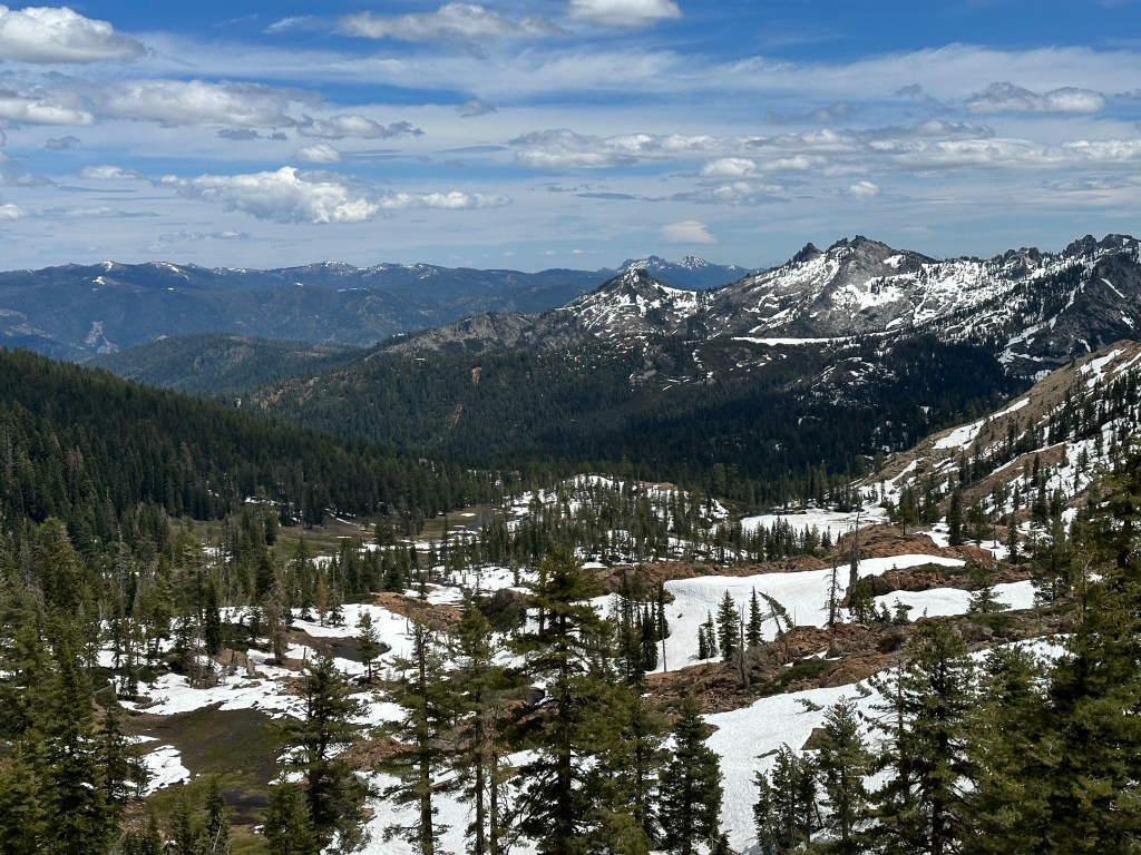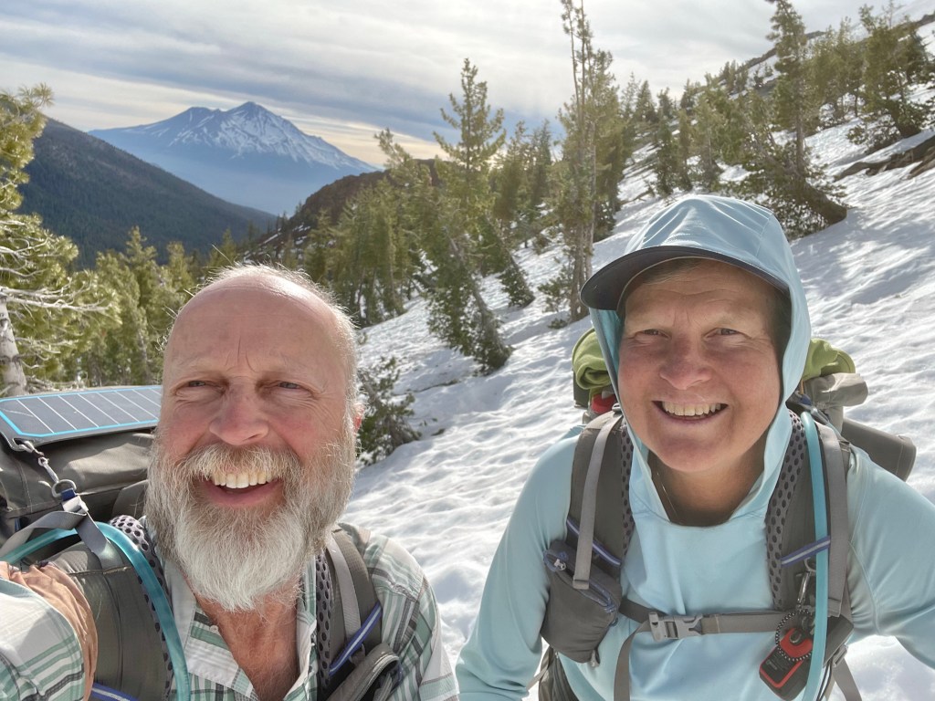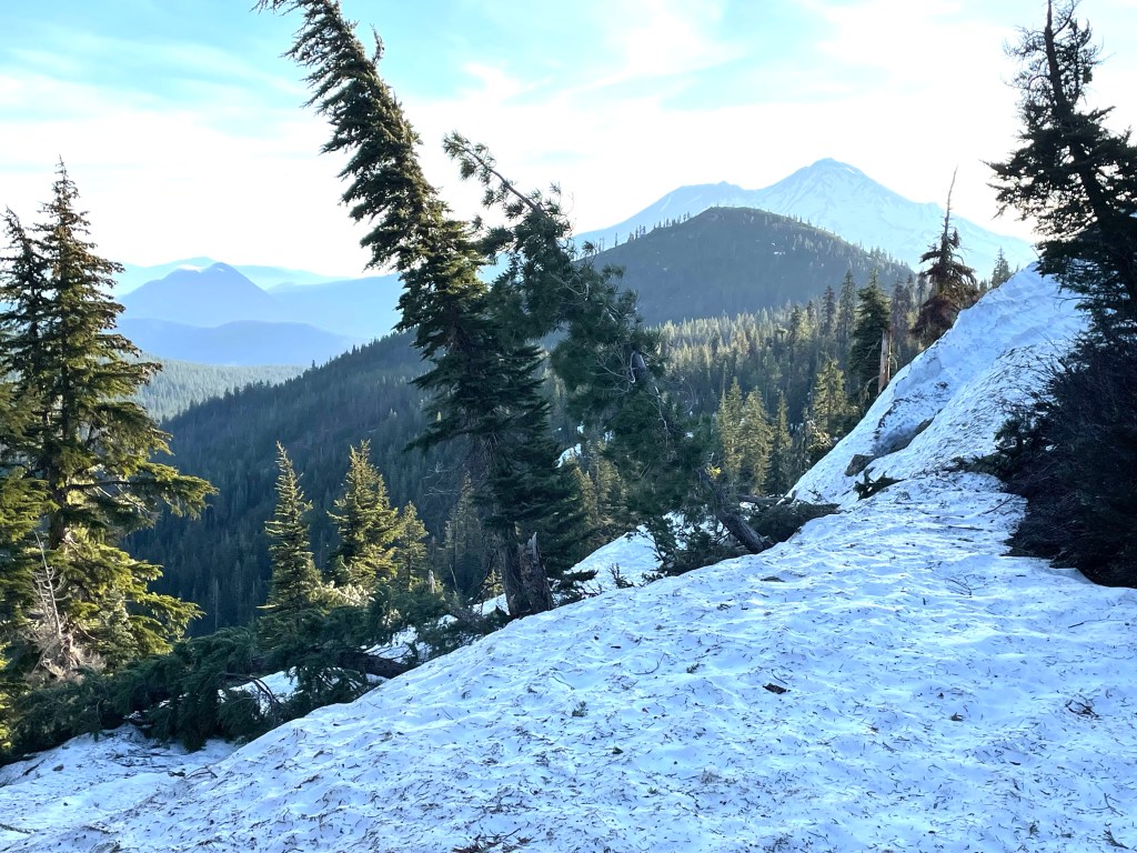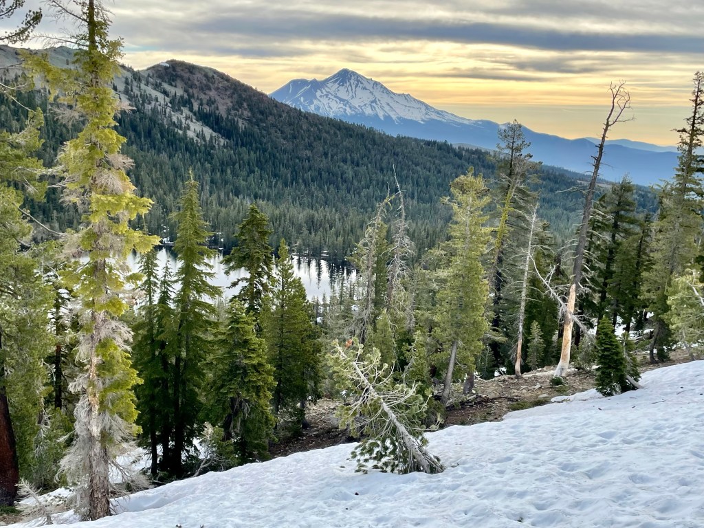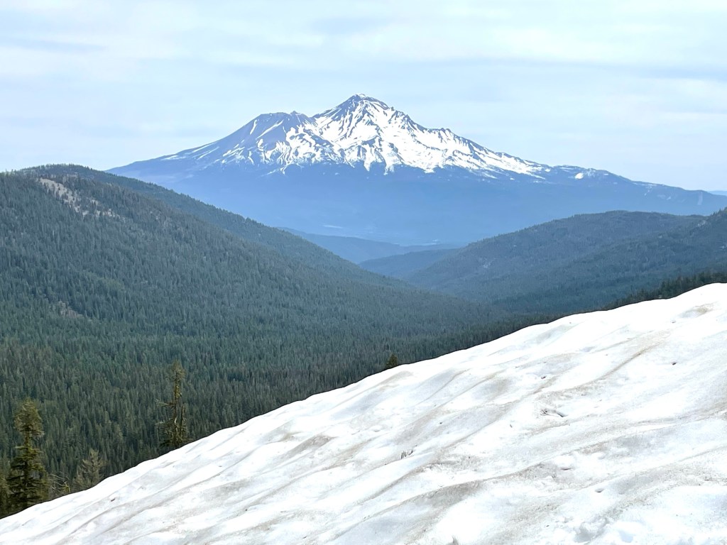 The trail was uneventful and mainly snow free. There were some great views as we looked back. Also, Mt. Shasta kept making appearances as we rounded corners and looked back. It looks like the snow was melting fast on the mountain.