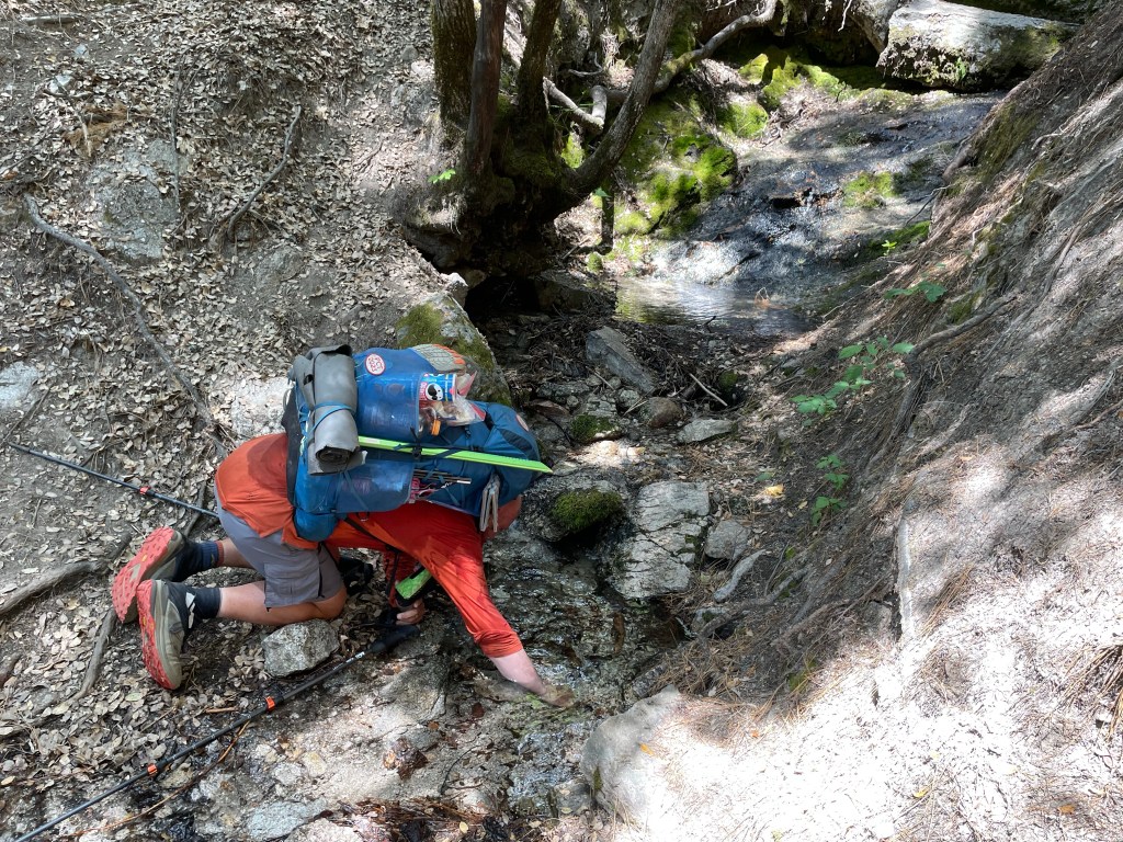 We made pretty good progress despite not hiking for a week. After lunch we had a few miles to go until the big climb of the day. Stopping at the last creek before the climb we all camelled up (meaning we drank lots of water).