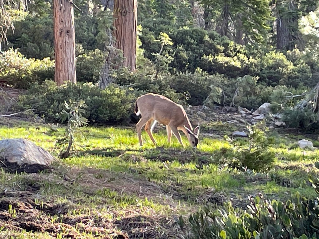 We only had 5.7 miles to do today so we slept in. We were greeted by a deer who could care less about us. It was like he was saying: “This is my area and your disturbing me at breakfast.”