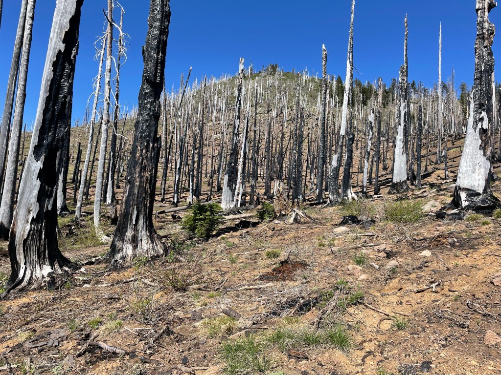 The last few hours of the day was spent walking through the burn area of the 2008 Middle Fork Complex fire. It looked like that fire burned really hot as most of the trees were scorched and the ground was black. The good thing was there was a breeze and the skeeters were gone! Yay!